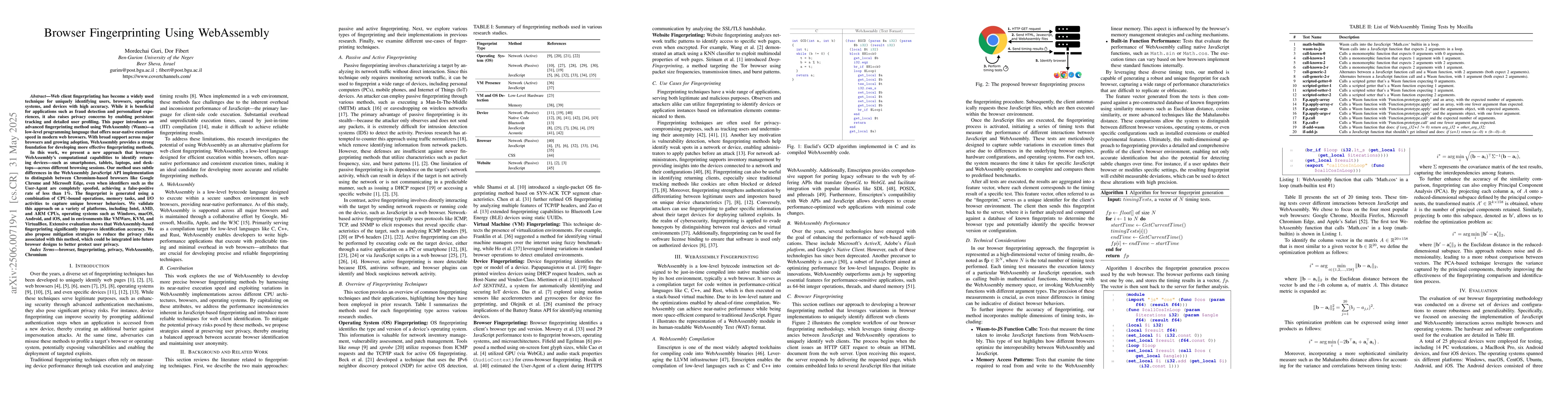 Researchers developed a new browser fingerprinting method using WebAssembly that achieves high accuracy and can distinguish between browsers even with spoofed User-Agent headers. The method improves identification accuracy while proposing mitigation strategies to protect user privacy.