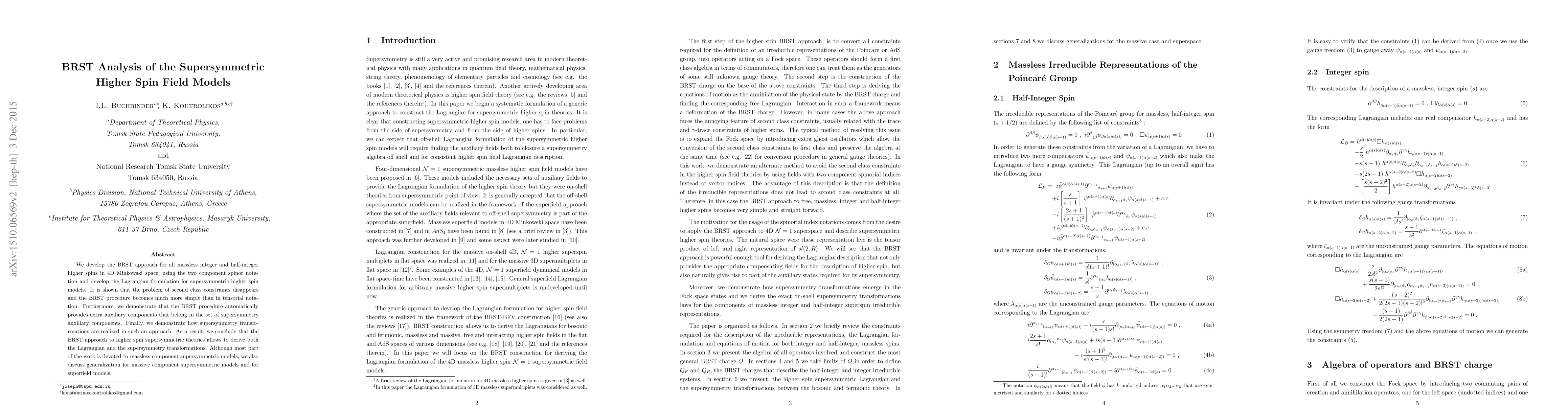 This paper develops a BRST approach for massless higher spin fields in 4D, showing the elimination of second-class constraints and simplification compared to tensorial notation. It also highlights the automatic provision of auxiliary supersymmetry components and demonstrates the realization of supersymmetry transformations.