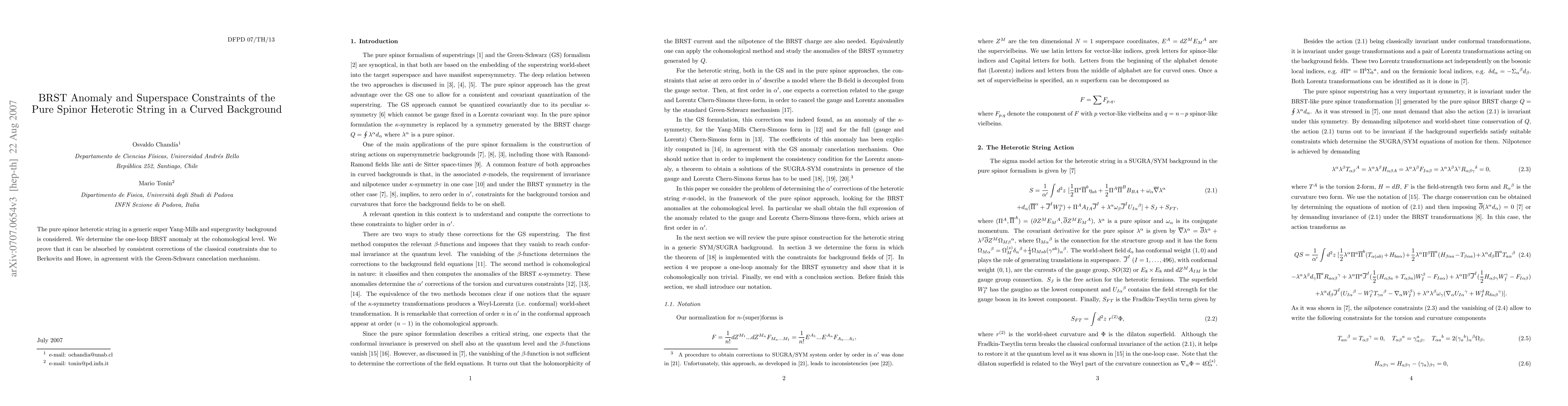This research investigates the pure spinor heterotic string theory in curved backgrounds, determining its one-loop BRST anomaly. The study demonstrates that the anomaly can be neutralized by appropriate modifications to classical constraints, confirming the Green-Schwarz mechanism for anomaly cancellation.