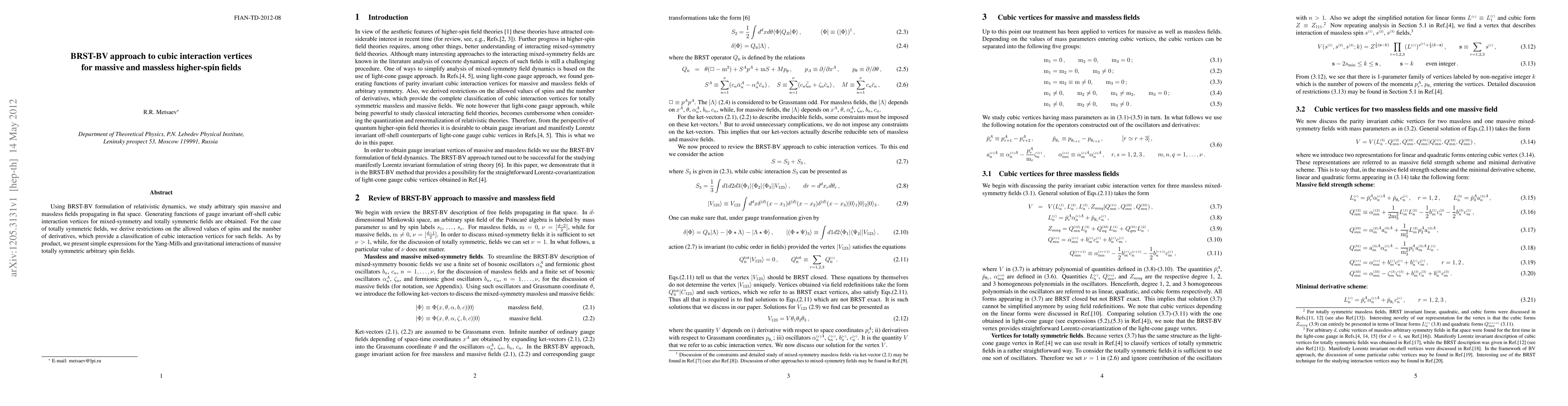 This paper utilizes BRST-BV formulation to derive gauge invariant off-shell cubic interaction vertices for massive and massless higher-spin fields, classifying vertices for totally symmetric fields and providing expressions for Yang-Mills and gravitational interactions of massive fields.