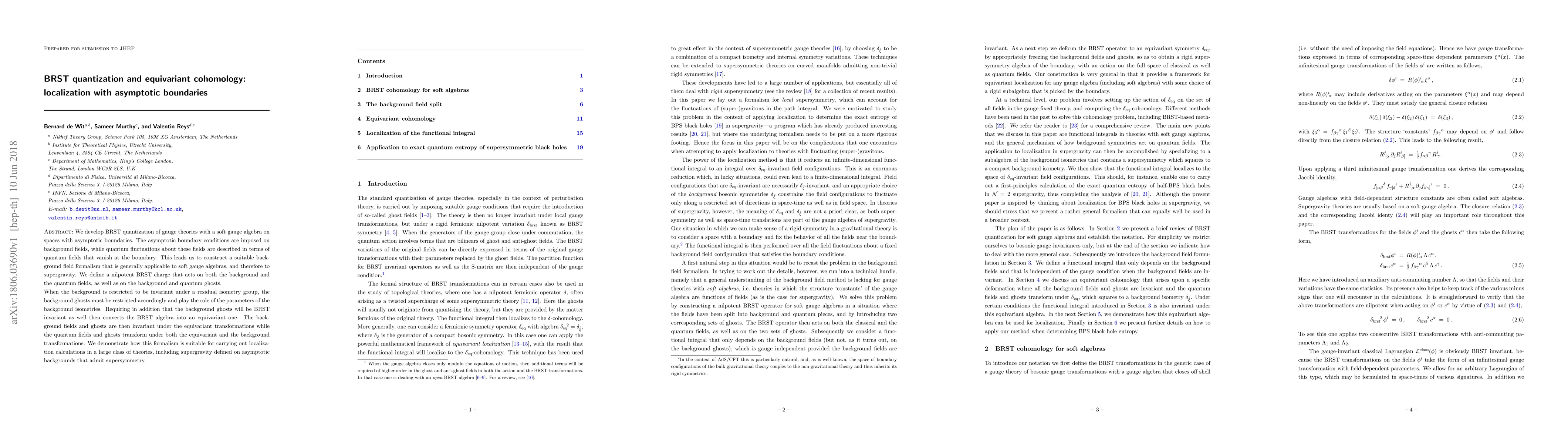 This paper develops a BRST quantization method for gauge theories with soft gauge algebras on spaces with asymptotic boundaries, introducing a suitable background field formalism and a nilpotent BRST charge. The equivariant BRST algebra is shown to be effective for localization calculations in supergravity and other theories.