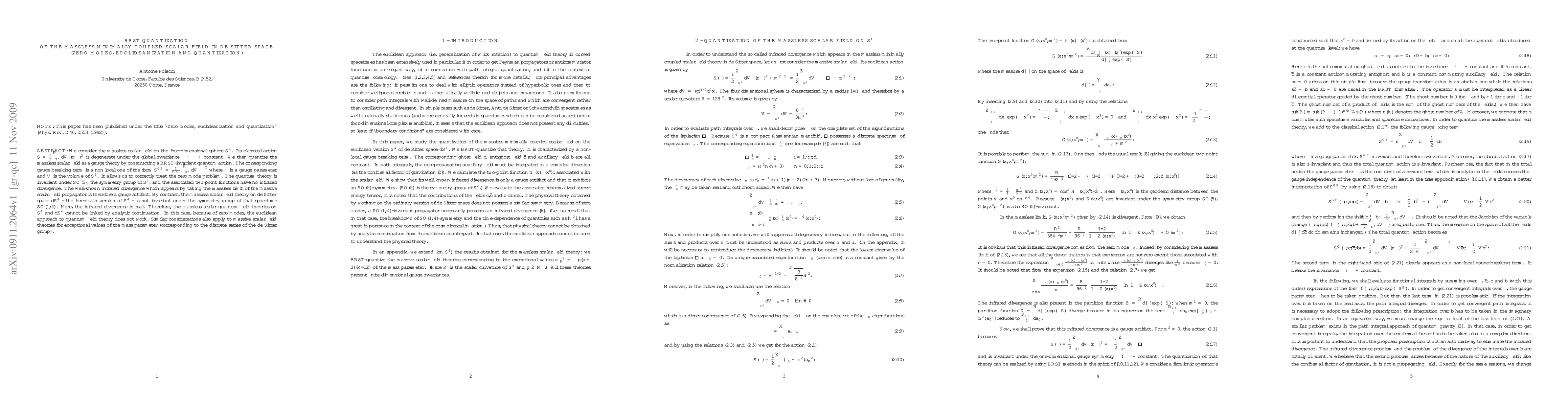 This paper quantizes a massless scalar field on the four-dimensional sphere $S^4$ using BRST quantization, addressing the zero mode problem with a non-local gauge-breaking term. It reveals that the infrared divergence in the massless limit is a gauge artifact, contrasting with the real divergence in de Sitter space $dS^4$, indicating that these theories cannot be analytically connected.