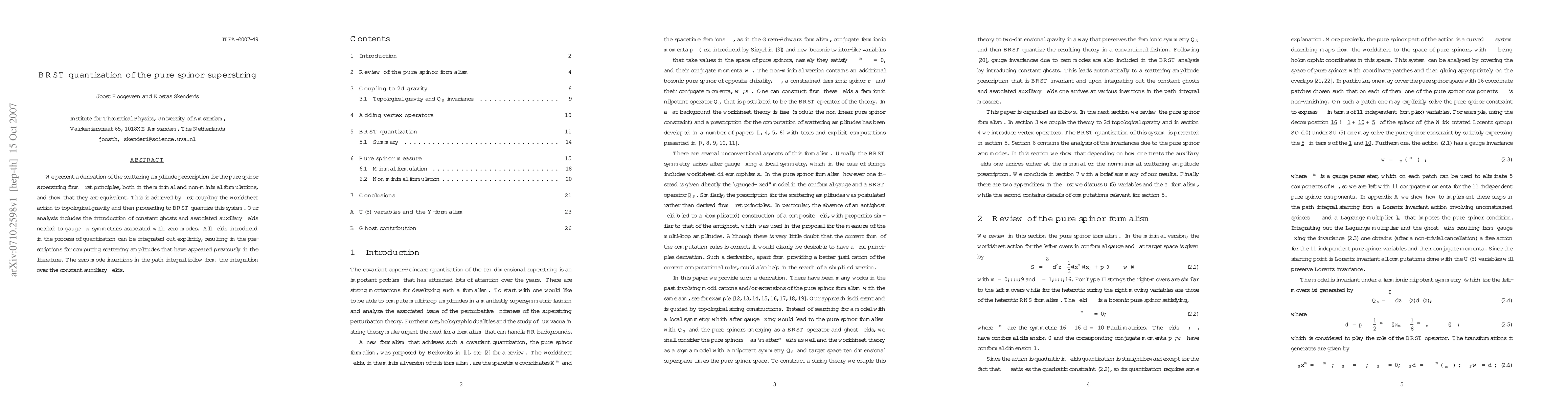 Researchers derive a scattering amplitude prescription for the pure spinor superstring using BRST quantization, showing equivalence between minimal and non-minimal formulations.