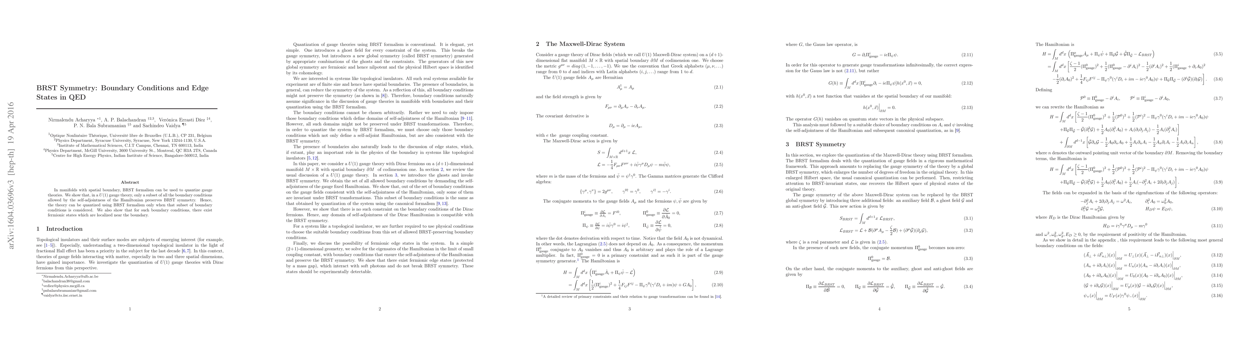 A study on Quantum Electrodynamics (QED) found that certain boundary conditions preserve BRST symmetry, allowing for the theory to be quantized using this formalism, and that these boundary conditions create localized fermionic states near the edge.