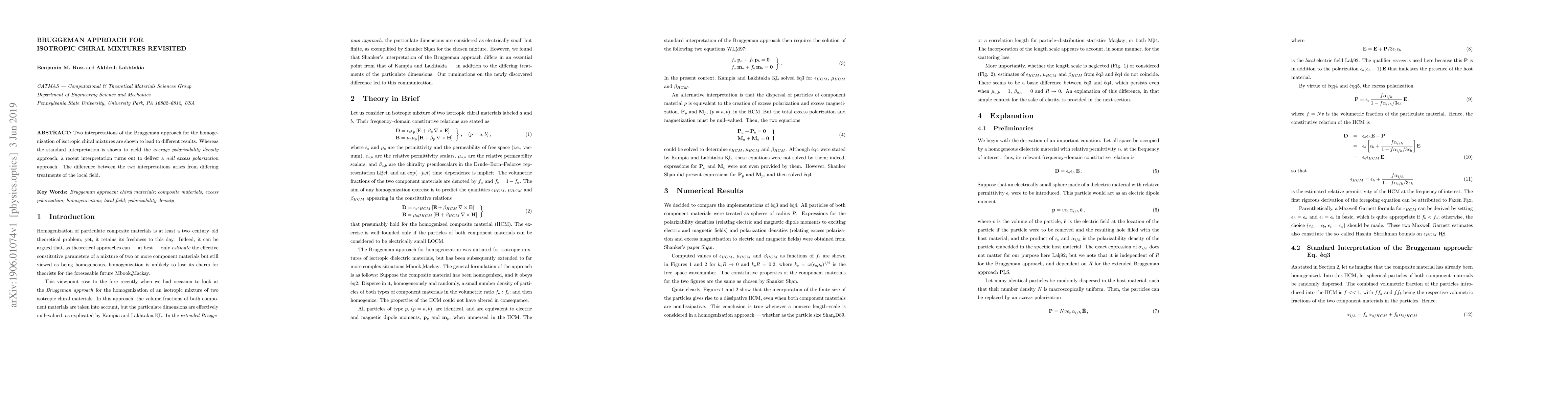 Two interpretations of the Bruggeman approach for the homogenization of isotropic chiral mixtures are shown to lead to different results. Whereas the standard interpretation is shown to yield the average-polarizability-density approach, a recent interpretation turns out to deliver a null-excess-polarization approach. The difference between the two interpretations arises from differing treatments of the local field