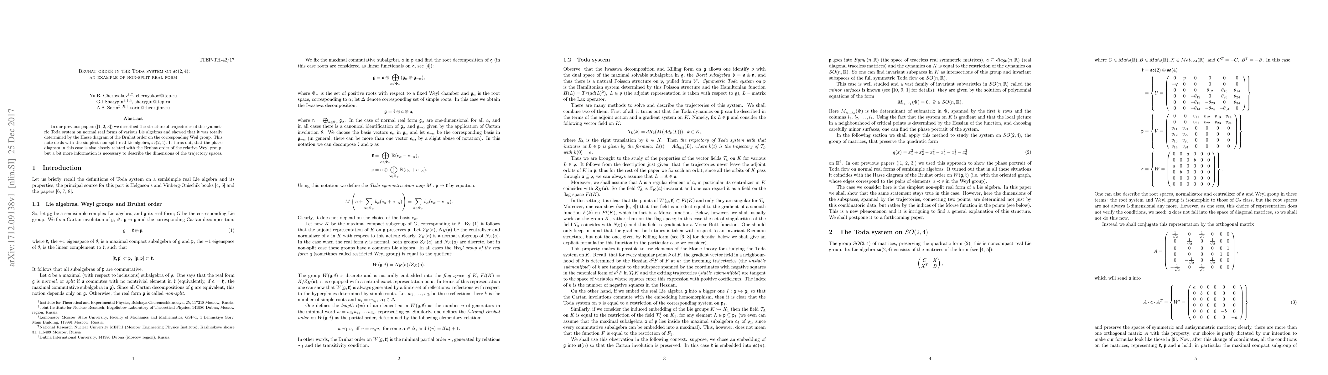In our previous papers we described the structure of trajectories of the symmetric Toda system on normal real forms of various Lie algebras and showed that it was totally determined by the Hasse diagram of the Bruhat order on the corresponding Weil group. This note deals with the simplest non-split real Lie algebra, $\mathfrak{so}(2,4)$. It turns out, that the phase diagram in this case is also closely related with the Bruhat order of the relative Weyl group, but a bit more information is necessary to describe the dimensions of the trajectory spaces.