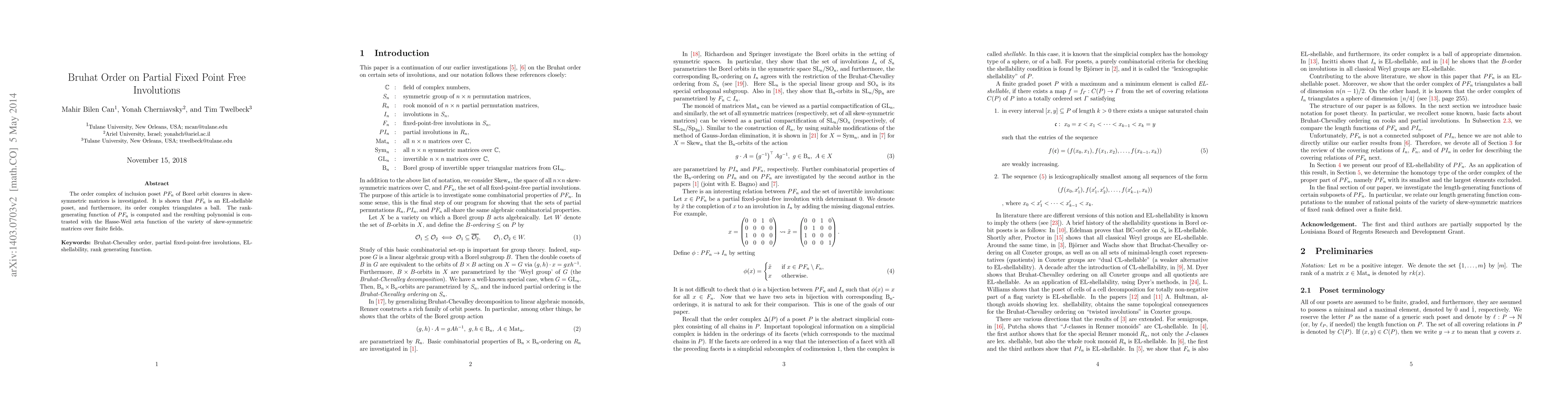 Researchers investigated the order complex of a poset related to skew-symmetric matrices, finding it triangulates a ball and computing its rank-generating function, which contrasts with the Hasse-Weil zeta function of the variety of skew-symmetric matrices over finite fields.