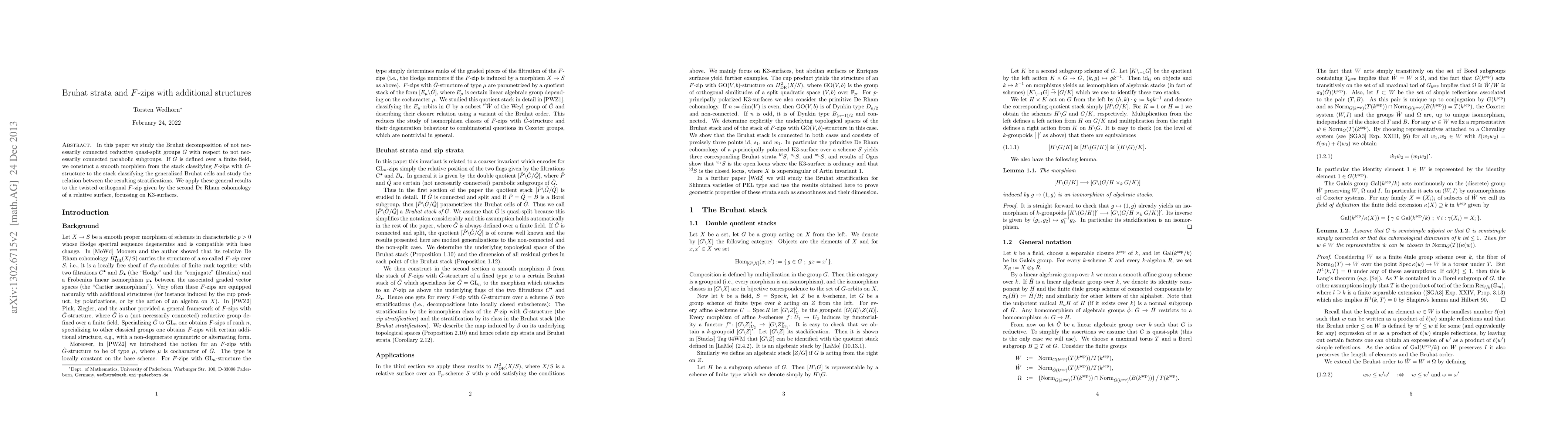 In this paper we study the Bruhat decomposition of not necessarily connected reductive quasi-split groups $G$ with respect to not necessarily connected parabolic subgroups. If $G$ is defined over a finite field, we construct a smooth morphism from the stack classifying $F$-zips with $G$-structure to the stack classifying the generalized Bruhat cells and study the relation between the resulting stratifications. We apply these general results to the twisted orthogonal $F$-zip given by the second De Rham cohomology of a relative surface, focussing on K3-surfaces.