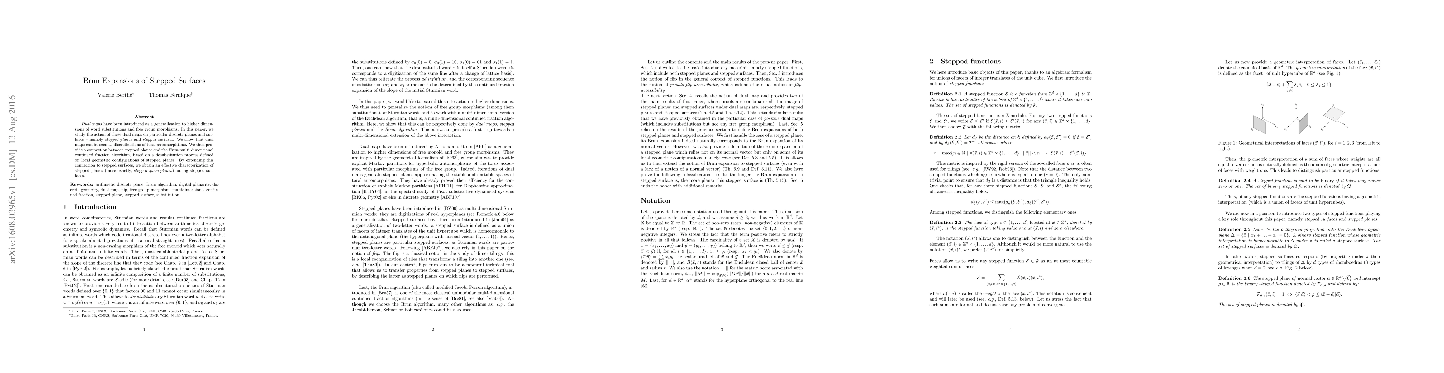 This paper explores the action of dual maps on stepped surfaces, showing they discretize toral automorphisms. It establishes a link between stepped planes and Brun's multi-dimensional continued fraction algorithm, providing a characterization of stepped planes within stepped surfaces.