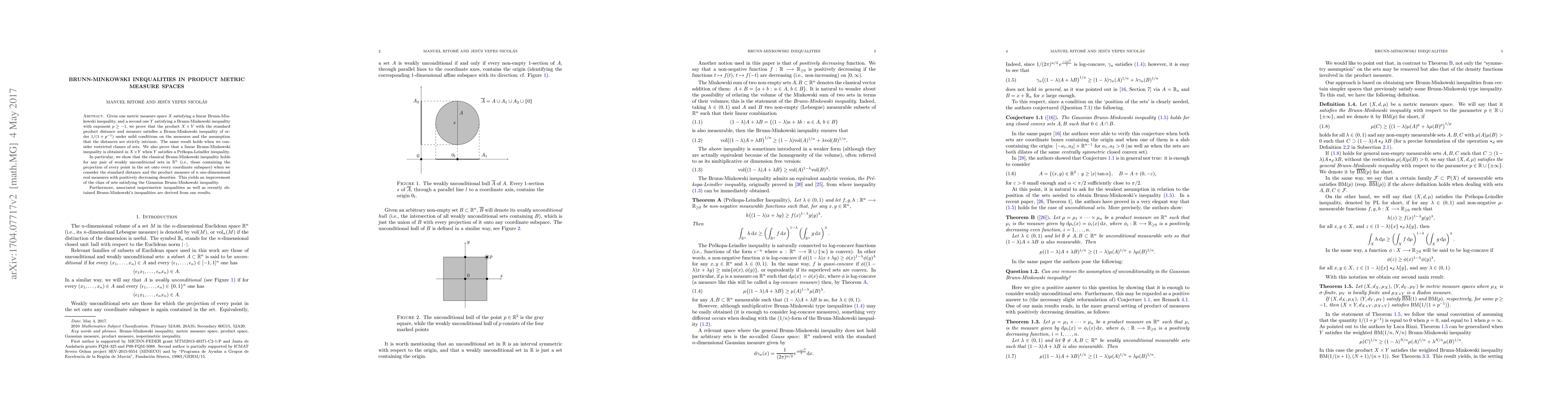 This paper proves that the product of two metric measure spaces satisfying Brunn-Minkowski inequalities, under specific conditions, also satisfies a Brunn-Minkowski inequality with an exponent determined by the original spaces. It also shows that weakly unconditional sets in $\mathbb{R}^n$ maintain this property under the product measure.