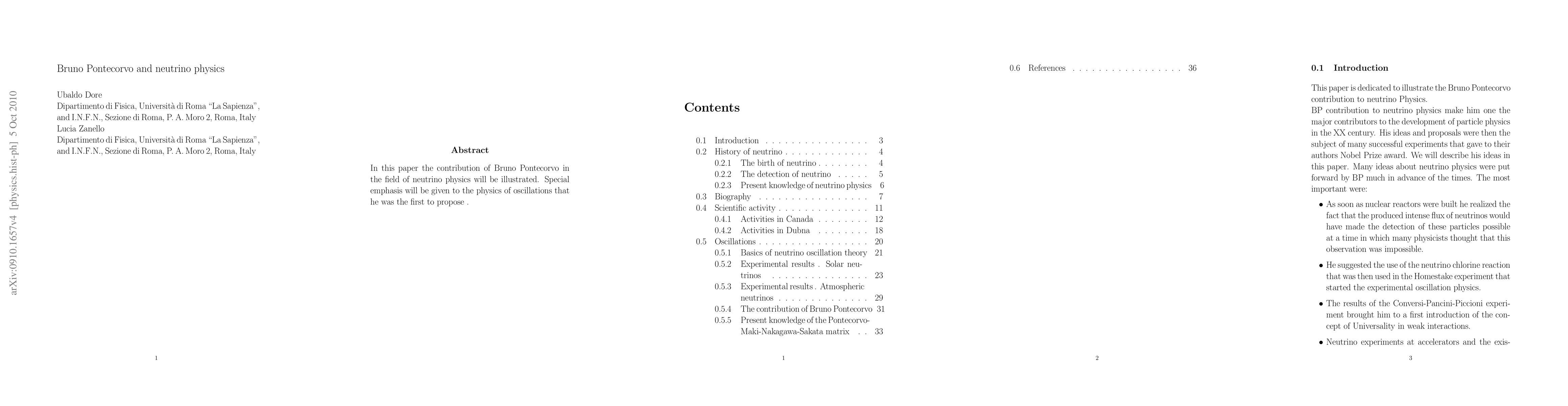 In this paper the contribution of Bruno Ponrecoevo will be illustrated Special emphasis will be given to oscillations physics that he was the first to propose.