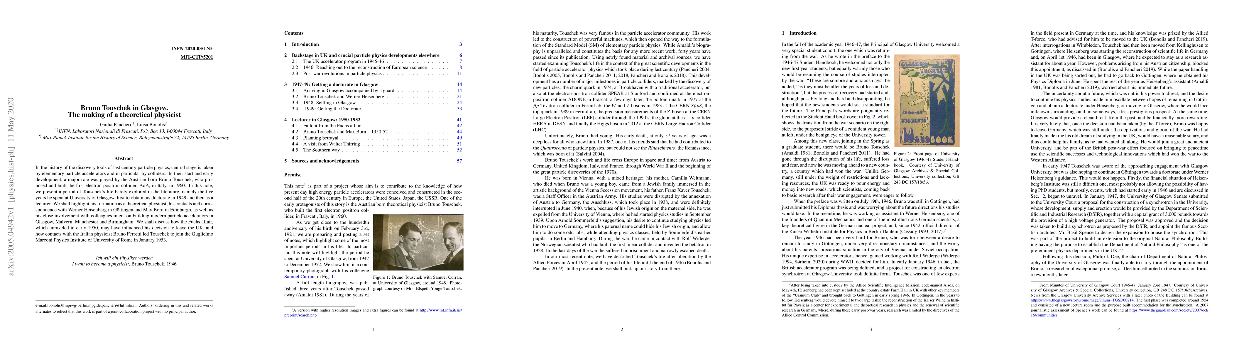 Bruno Touschek's time at University of Glasgow from 1949 to 1953 shaped his development as a theoretical physicist, with connections to Werner Heisenberg and Max Born, influencing his career choices.