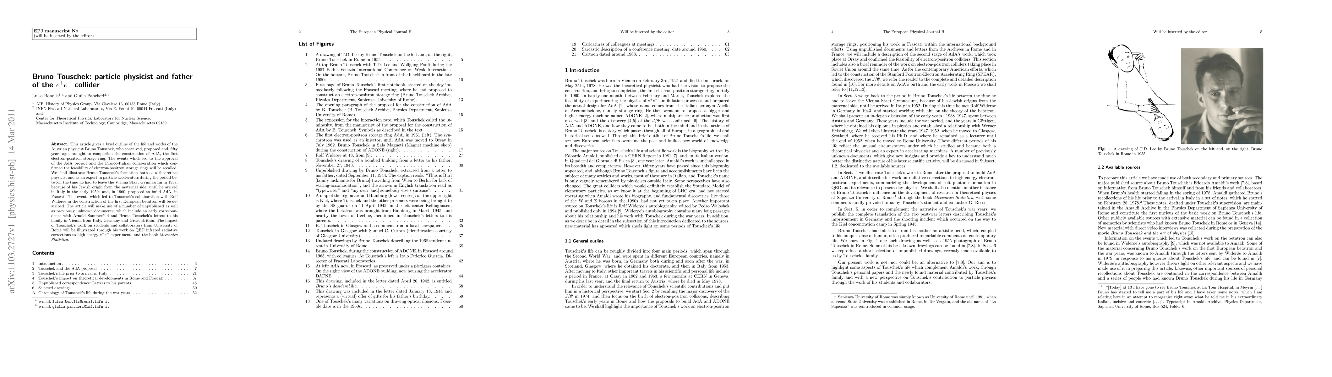 This article gives a brief outline of the life and works of the Austrian physicist Bruno Touschek, who conceived, proposed and, 50 years ago, brought to completion the construction of AdA, the first electron-positron storage ring. The events which led to the approval of the AdA pro ject and the Franco-Italian collaboration which con- firmed the feasibility of electron-positron storage rings will be recalled. We shall illustrate Bruno Touschek's formation both as a theoretical physicist and as an expert in particle accelerators during the period be- tween the time he had to leave the Vienna Staat Gymnasium in 1938, because of his Jewish origin from the maternal side, until he arrived in Italy in the early 1950s and, in 1960, proposed to build AdA, in Frascati. The events which led to Touschek's collaboration with Rolf Wideroe in the construction of the first European betatron will be de- scribed. The article will make use of a number of unpublished as well as previously unknown documents, which include an early correspon- dence with Arnold Sommerfeld and Bruno Touschek's letters to his family in Vienna from Italy, Germany and Great Britain. The impact of Touschek's work on students and collaborators from University of Rome will be illustrated through his work on QED infrared radiative corrections to high energy e+e- experiments and the book Meccanica Statistica.