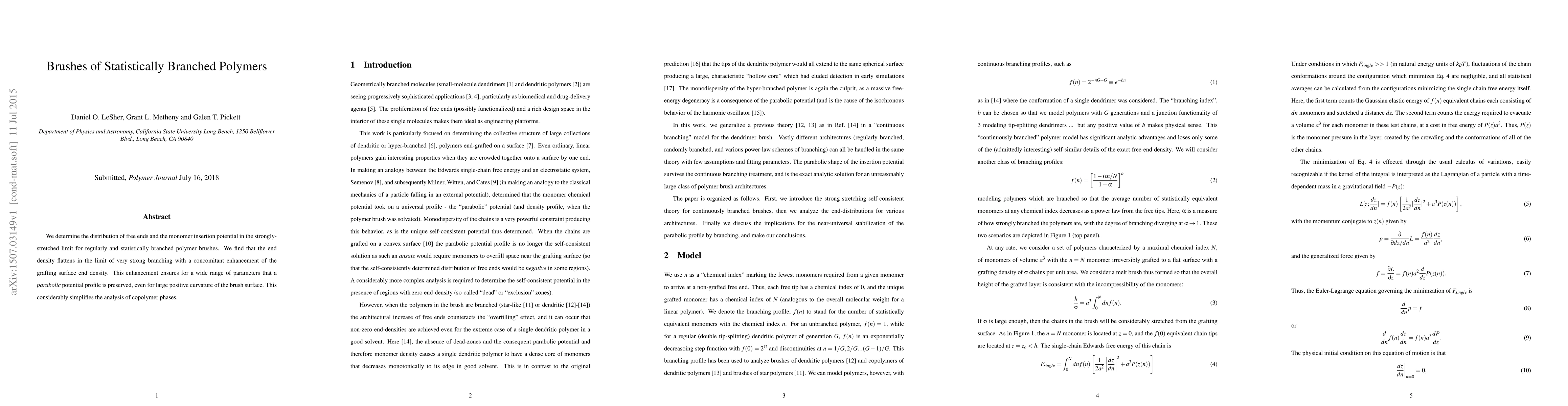 Researchers studied polymer brushes with strong branching, finding that end density flattens and grafting surface end density increases in the strongly-stretched limit, preserving a parabolic potential profile.