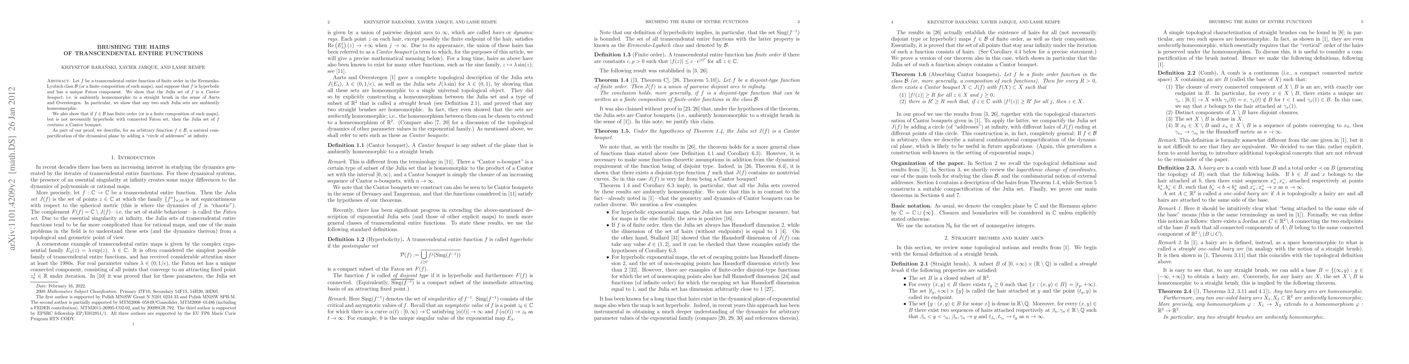 Let f be a hyperbolic transcendental entire function of finite order in the Eremenko-Lyubich class (or a finite composition of such maps), and suppose that f has a unique Fatou component. We show that the Julia set of $f$ is a Cantor bouquet; i.e. is ambiently homeomorphic to a straight brush in the sense of Aarts and Oversteegen. In particular, we show that any two such Julia sets are ambiently homeomorphic. We also show that if $f\in\B$ has finite order (or is a finite composition of such maps), but is not necessarily hyperbolic, then the Julia set of f contains a Cantor bouquet. As part of our proof, we describe, for an arbitrary function $f\in\B$, a natural compactification of the dynamical plane by adding a "circle of addresses" at infinity.