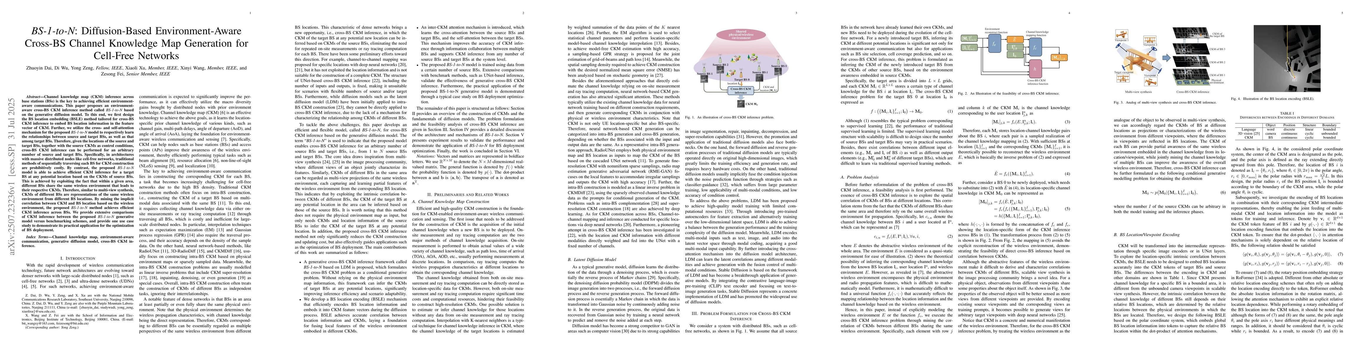 Channel knowledge map (CKM) inference across base stations (BSs) is the key to achieving efficient environmentaware communications. This paper proposes an environmentaware cross-BS CKM inference method called BS-1-to-N based on the generative diffusion model. To this end, we first design the BS location embedding (BSLE) method tailored for cross-BS CKM inference to embed BS location information in the feature vector of CKM. Further, we utilize the cross- and self-attention mechanism for the proposed BS-1-to-N model to respectively learn the relationships between source and target BSs, as well as that among target BSs. Therefore, given the locations of the source and target BSs, together with the source CKMs as control conditions, cross-BS CKM inference can be performed for an arbitrary number of source and target BSs. Specifically, in architectures with massive distributed nodes like cell-free networks, traditional methods of sequentially traversing each BS for CKM construction are prohibitively costly. By contrast, the proposed BS-1-to-N model is able to achieve efficient CKM inference for a target BS at any potential location based on the CKMs of source BSs. This is achieved by exploiting the fact that within a given area, different BSs share the same wireless environment that leads to their respective CKMs. Therefore, similar to multi-view synthesis, CKMs of different BSs are representations of the same wireless environment from different BS locations. By mining the implicit correlation between CKM and BS location based on the wireless environment, the proposed BS-1-to-N method achieves efficient CKM inference across BSs. We provide extensive comparisons of CKM inference between the proposed BS-1-to-N generative model versus benchmarking schemes, and provide one use case study to demonstrate its practical application for the optimization of BS deployment.