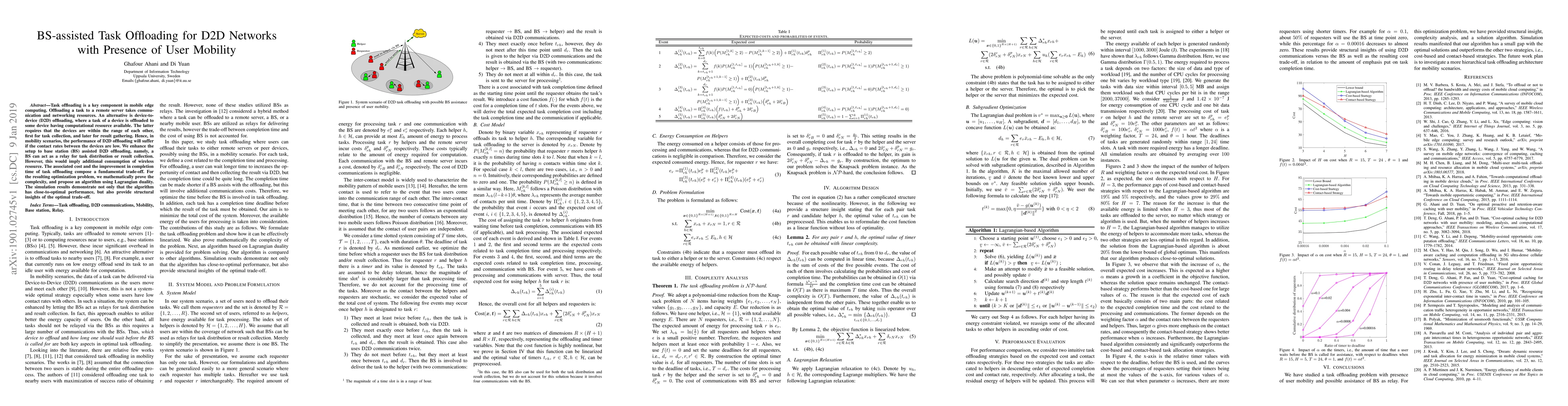 Researchers propose a method to optimize task offloading in mobile edge computing using base station-assisted device-to-device networks, balancing cost and completion time. The algorithm uses Lagrangian duality to achieve near-optimal performance.