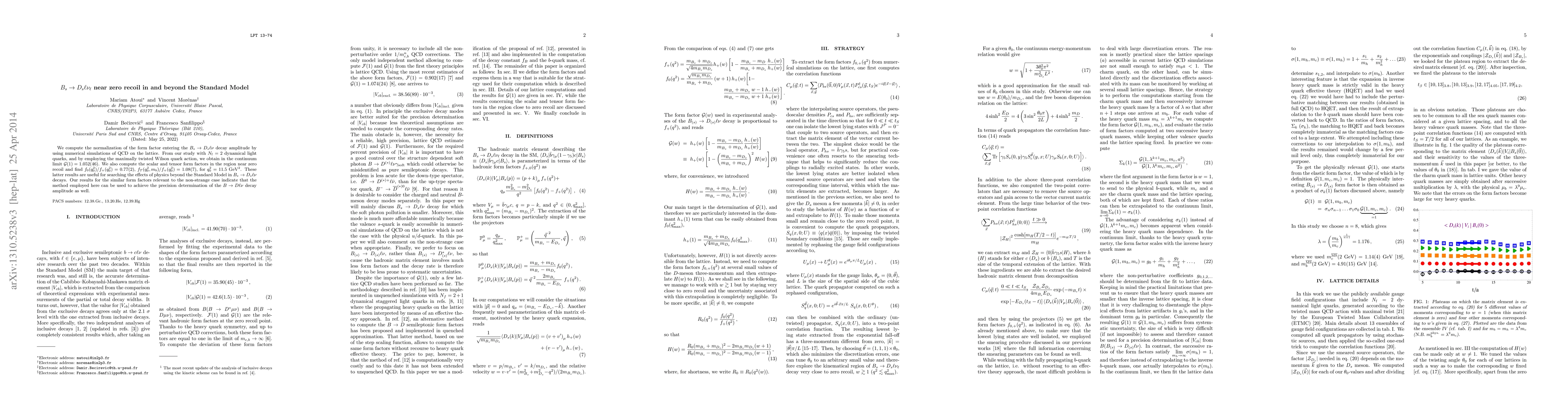 We compute the normalization of the form factor entering the Bs --> Ds l nu decay amplitude by using numerical simulations of QCD on the lattice. From our study with Nf=2 dynamical light quarks, and by employing the maximally twisted Wilson quark action, we obtain in the continuum limit G(1) = 1.052(46). We also compute the scalar and tensor form factors in the region near zero recoil and find f0(t0)/f+(t0)=0.77(2), fT(t0,mb)/f+(t0)=1.08(7), for t0=11.5 GeV^2. These latter results are useful for searching the effects of physics beyond the Standard Model in Bs --> Ds l nu decays. Our results for the similar form factors relevant to the non-strange case indicate that the method employed here can be used to achieve the precision determination of the B --> D l nu decay amplitude as well.