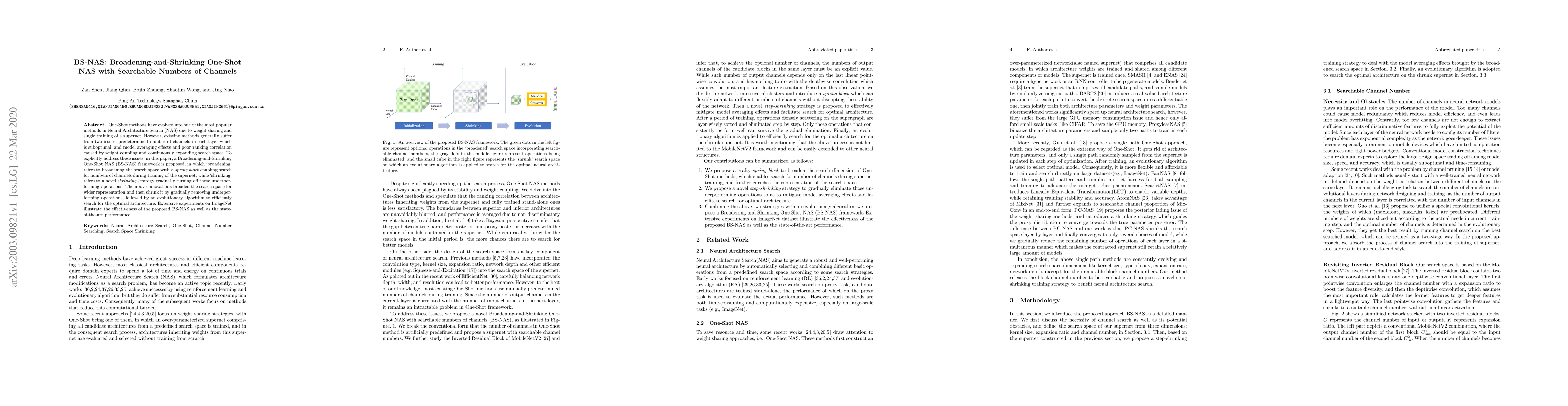 The BS-NAS framework proposes a novel approach to Neural Architecture Search by broadening the search space with a spring block to dynamically adjust channel numbers and shrinking suboptimal operations through a novel strategy, achieving state-of-the-art performance on ImageNet.