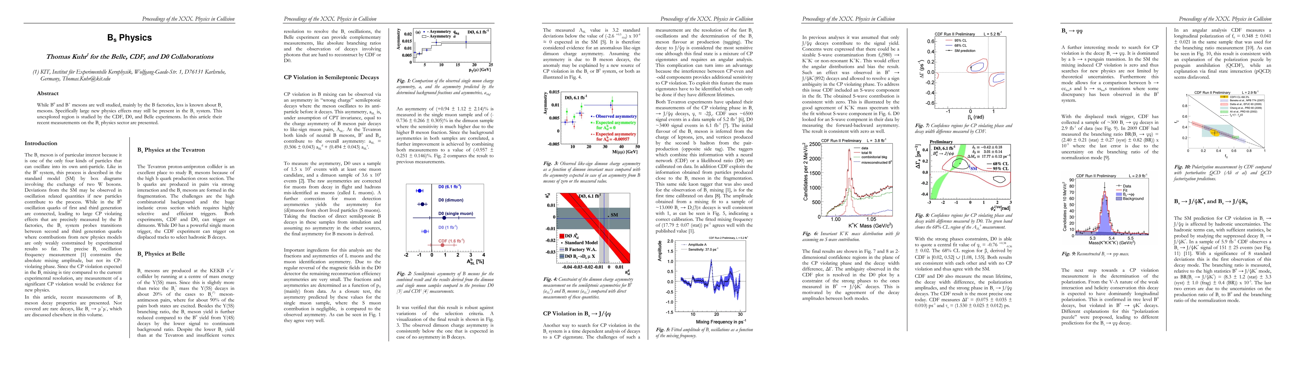 While B0 and B+ mesons are well studied, mainly by the B factories, less is known about Bs mesons. Specifically large new physics effects may still be present in the Bs system. This unexplored region is studied by the CDF, D0, and Belle experiments. In this article their recent measurements on the Bs physics sector are presented.