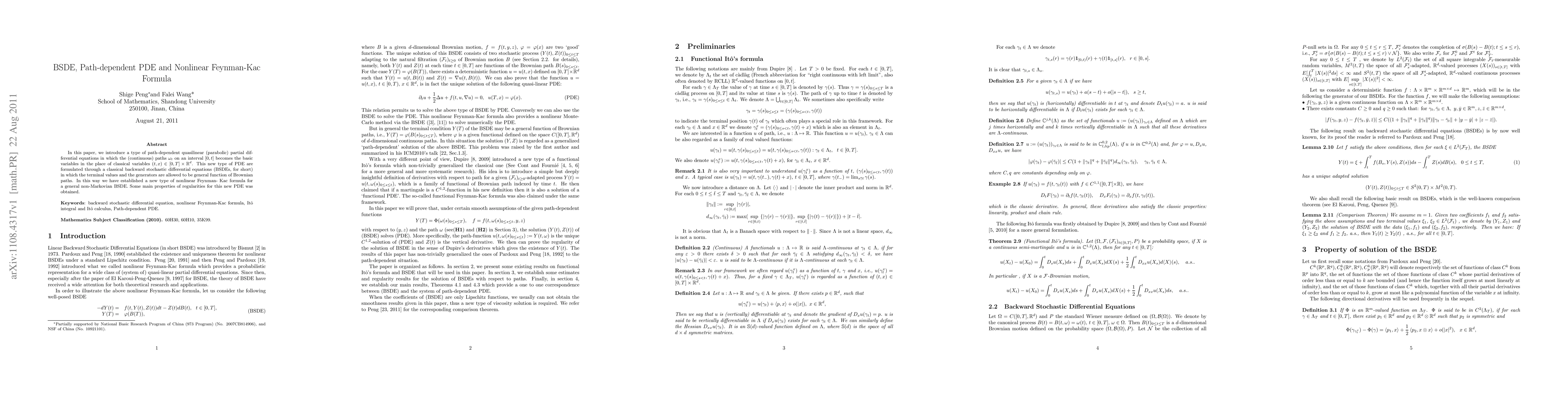 Researchers introduced a new type of path-dependent PDE that combines classical variables with Brownian paths, creating a nonlinear Feynman-Kac formula for non-Markovian BSDEs.
