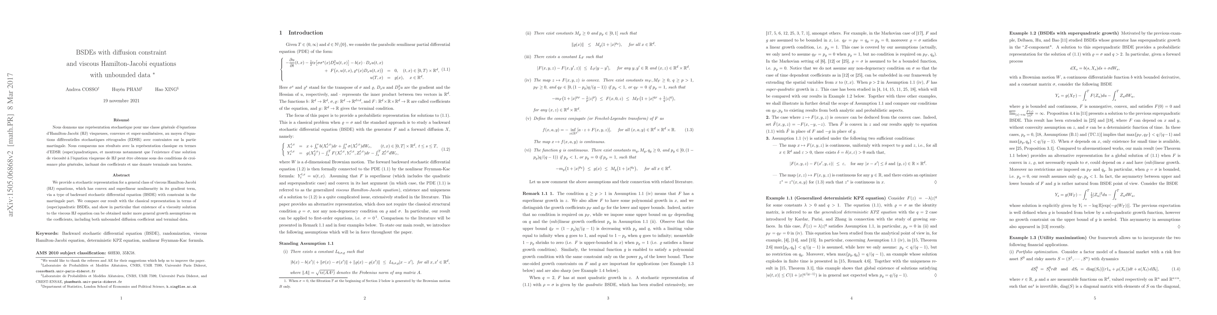 Researchers provide a new stochastic representation for viscous Hamilton-Jacobi equations using backward stochastic differential equations with constraints, enabling solutions under more general growth assumptions.