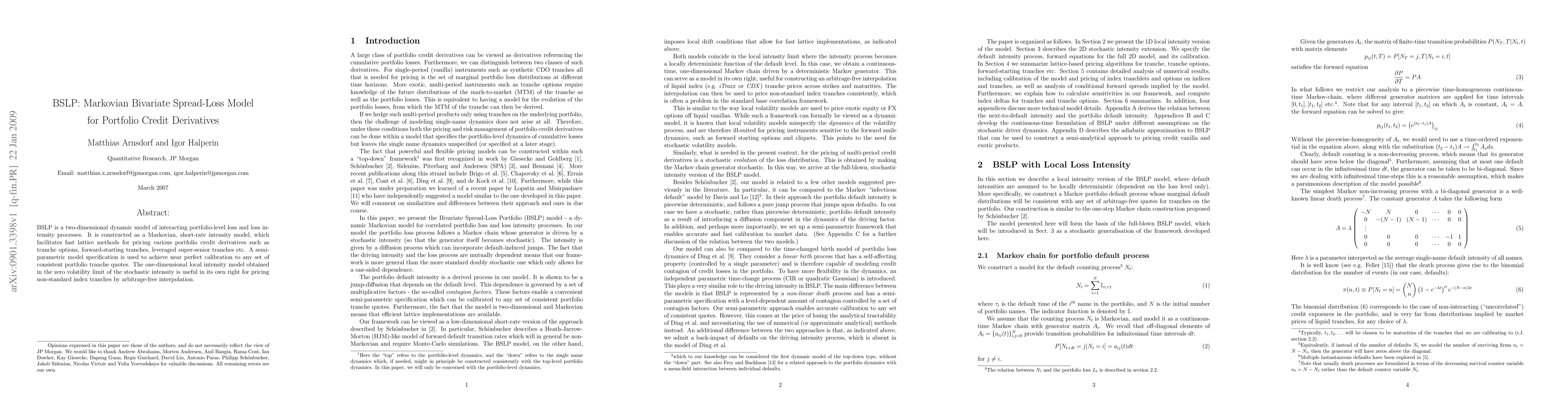BSLP is a two-dimensional dynamic model of interacting portfolio-level loss and spread (more exactly, loss intensity) processes. The model is similar to the top-down HJM-like frameworks developed by Schonbucher (2005) and Sidenius-Peterbarg-Andersen (SPA) (2005), however is constructed as a Markovian, short-rate intensity model. This property of the model enables fast lattice methods for pricing various portfolio credit derivatives such as tranche options, forward-starting tranches, leveraged super-senior tranches etc. A non-parametric model specification is used to achieve nearly perfect calibration to liquid tranche quotes across strikes and maturities. A non-dynamic version of the model obtained in the zero volatility limit of stochastic intensity is useful on its own as an arbitrage-free interpolation model to price non-standard index tranches off the standard ones.