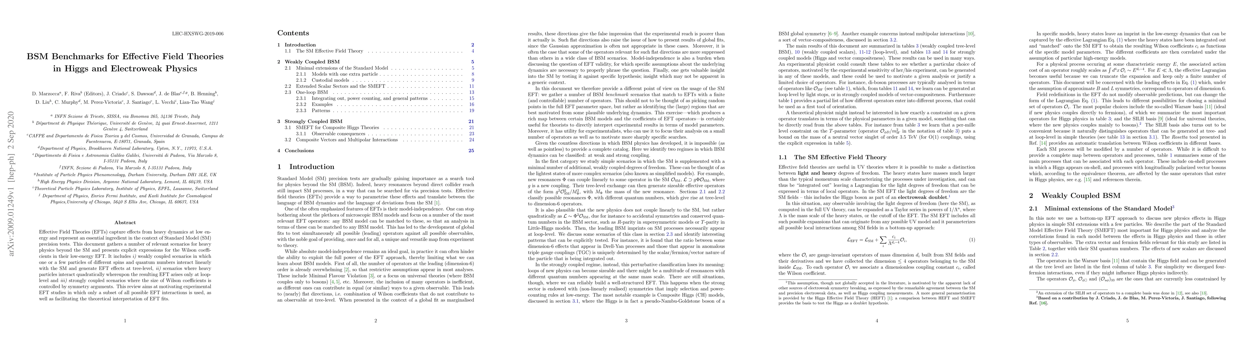 Effective Field Theories (EFTs) capture effects from heavy dynamics at low energy and represent an essential ingredient in the context of Standard Model (SM) precision tests. This document gathers a number of relevant scenarios for heavy physics beyond the SM and presents explicit expressions for the Wilson coefficients in their low-energy EFT. It includes i) weakly coupled scenarios in which one or a few particles of different spins and quantum numbers interact linearly with the SM and generate EFT effects at tree-level, ii) scenarios where heavy particles interact quadratically whereupon the resulting EFT arises only at loop-level and iii) strongly coupled scenarios where the size of Wilson coefficients is controlled by symmetry arguments. This review aims at motivating experimental EFT studies in which only a subset of all possible EFT interactions is used, as well as facilitating the theoretical interpretation of EFT fits.