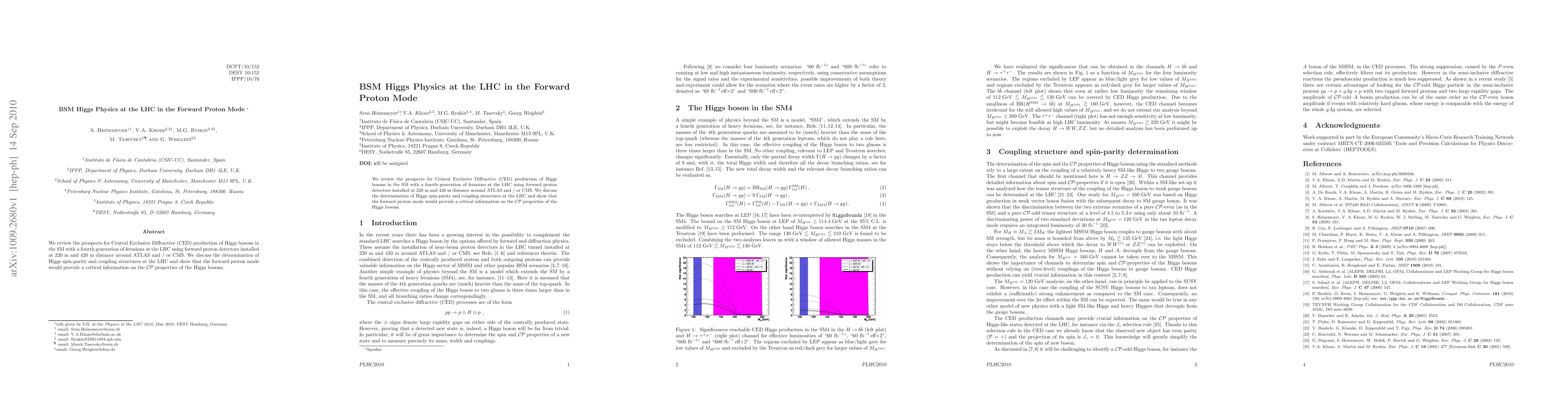 This paper reviews the potential of Central Exclusive Diffractive production of Higgs bosons at the LHC, particularly in the context of a fourth fermion generation, using forward proton detectors. It highlights how this method can determine Higgs spin-parity and coupling structures, offering crucial insights into the CP properties of Higgs bosons.