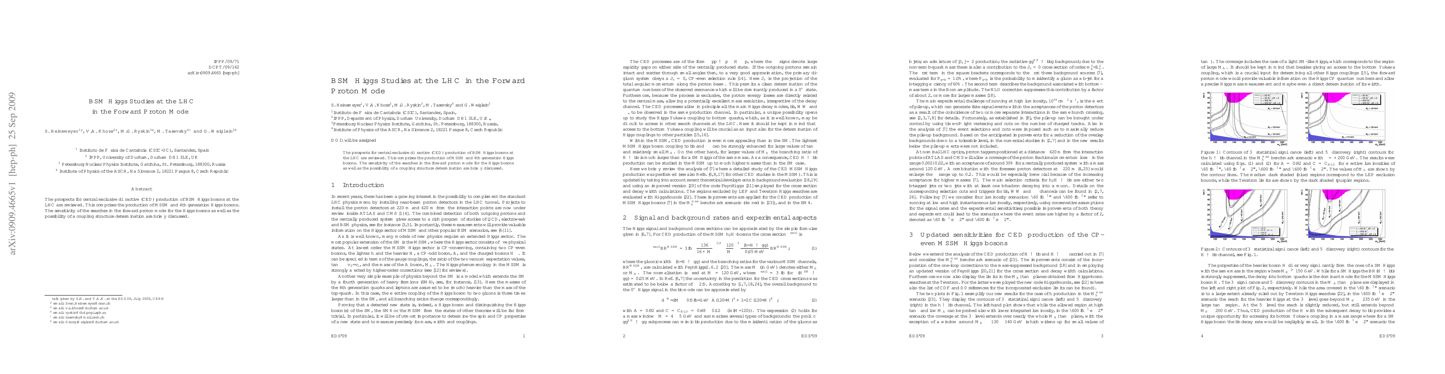 This paper reviews the potential for detecting beyond Standard Model (BSM) Higgs bosons via central exclusive diffractive production at the LHC in the forward proton mode, focusing on MSSM and 4th generation Higgs bosons, and discusses the sensitivity of these searches and the potential for determining coupling structures.
