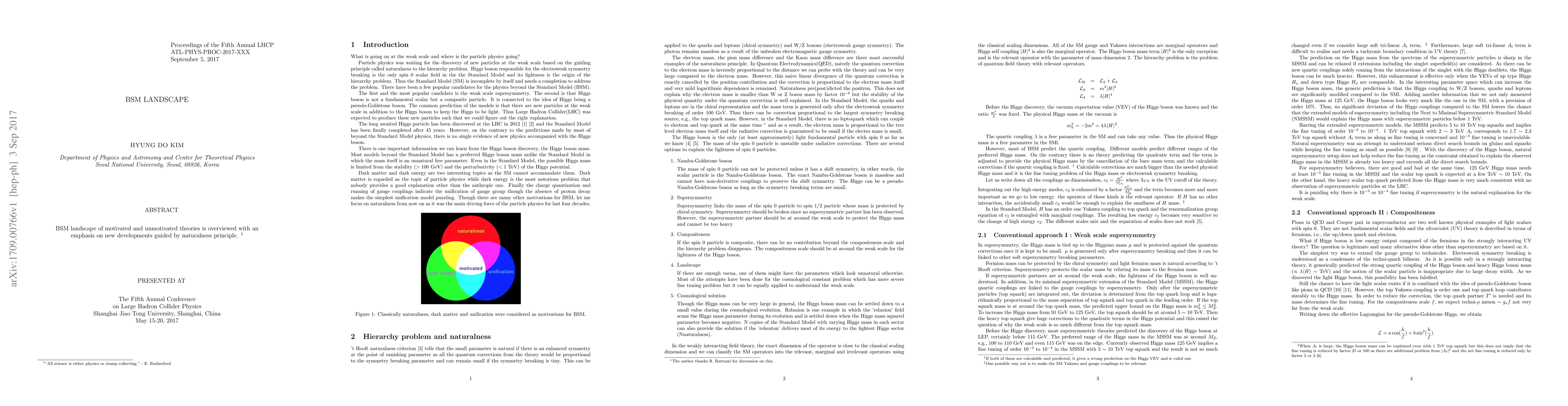 BSM landscape of motivated and unmotivated theories is overviewed with an emphasis on new developments guided by naturalness principle.