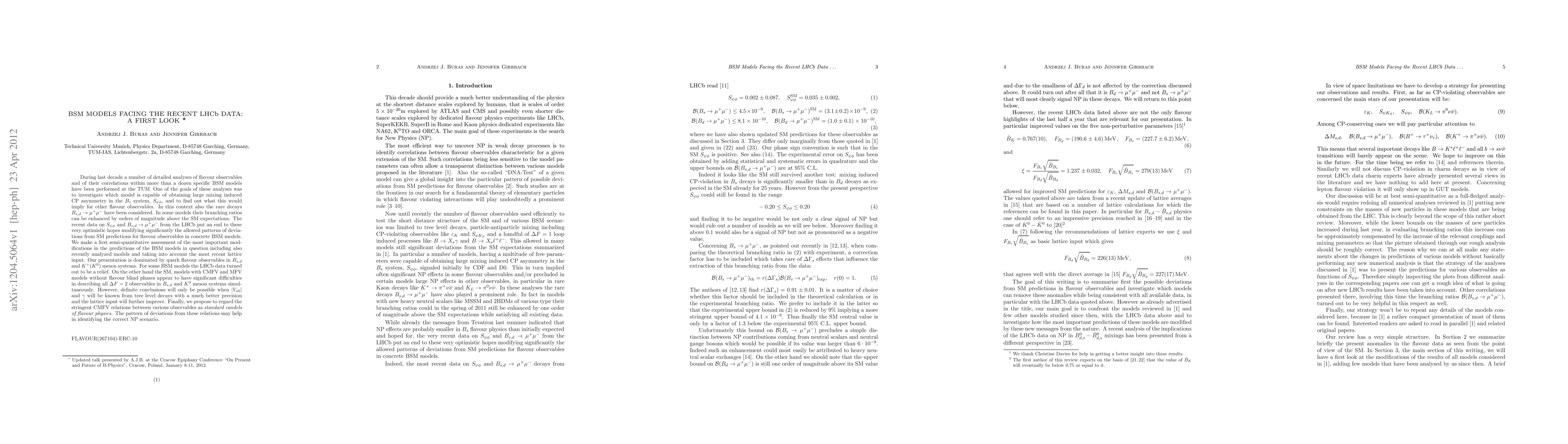 During last decade a number of detailed analyses of flavour observables and of their correlations within more than a dozen specific BSM models have been performed at the TUM. One of the goals of these analyses was to investigate which model is capable of obtaining large mixing induced CP asymmetry in the B_s system, S_{psi phi}, and to find out what this would imply for other flavour observables. In this context also the rare decays B_{s,d}->mu^+ mu^- have been considered. In some models their branching ratios can be enhanced by orders of magnitude above the SM expectations. The recent data on S_{psi phi} and B_{s,d}-> mu^+ mu^- from the LHCb put an end to these very optimistic hopes modifying significantly the allowed patterns of deviations from SM predictions for flavour observables in concrete BSM models. We make a first semi-quantitative assessment of the most important modifications in the predictions of the BSM models in question including also recently analyzed models and taking into account the most recent lattice input. For some BSM models the LHCb data turned out to be a relief. On the other hand the SM, models with CMFV and MFV models without flavour blind phases appear to have significant difficulties in describing all Delta F=2 observables in B_{s,d} and K^0 meson systems simultaneously. We propose to regard the stringent CMFV relations between various observables as standard candels of flavour physics. The pattern of deviations from these relations may help in identifying the correct NP scenario.