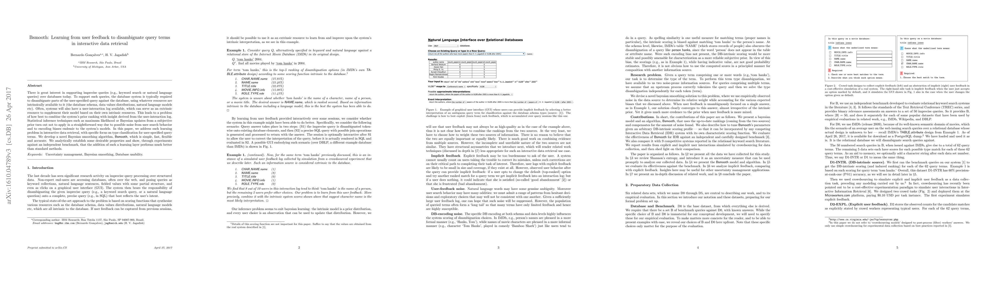 Researchers developed Bsmooth, a Bayesian smoothing algorithm to improve query term disambiguation in interactive data retrieval, outperforming standard methods through experiments.