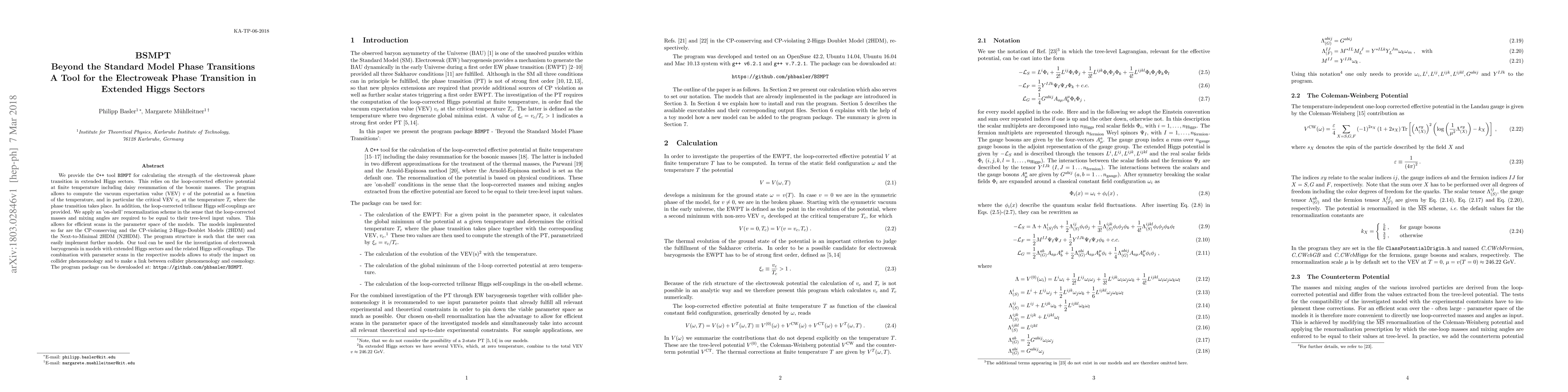 BSMPT is a C++ tool designed to calculate the strength of the electroweak phase transition in extended Higgs sectors, utilizing loop-corrected effective potentials and daisy resummation. It computes critical values and allows for efficient parameter space scans in CP-conserving and CP-violating 2-Higgs-Doublet Models and Next-to-Minimal 2HDM.