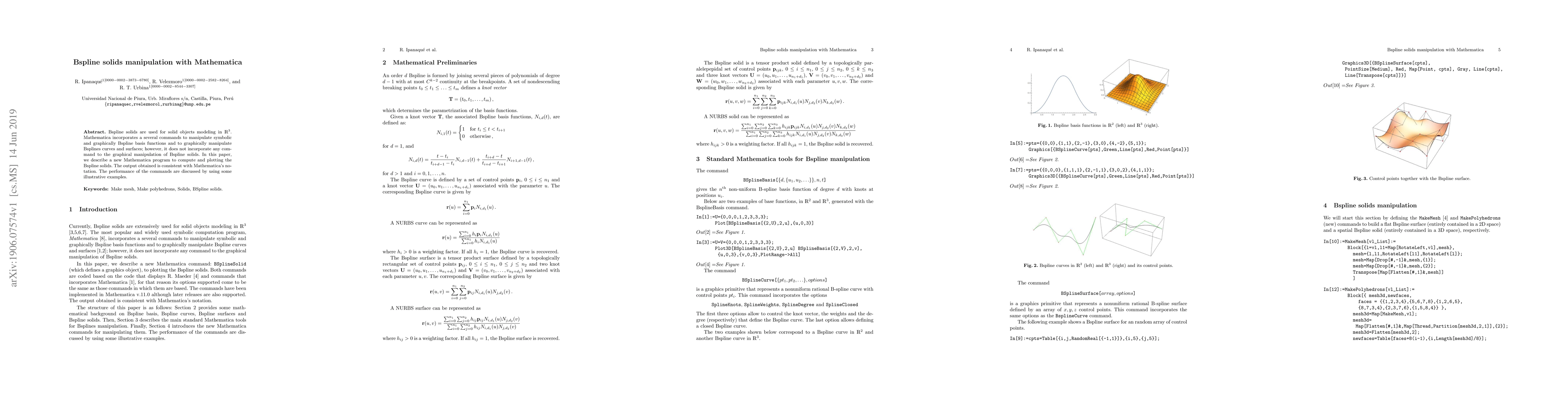 This paper introduces a new Mathematica program for computing and plotting Bspline solids, addressing the lack of built-in commands for graphical manipulation of these objects in Mathematica. The output aligns with Mathematica's notation, and the performance is demonstrated through illustrative examples.