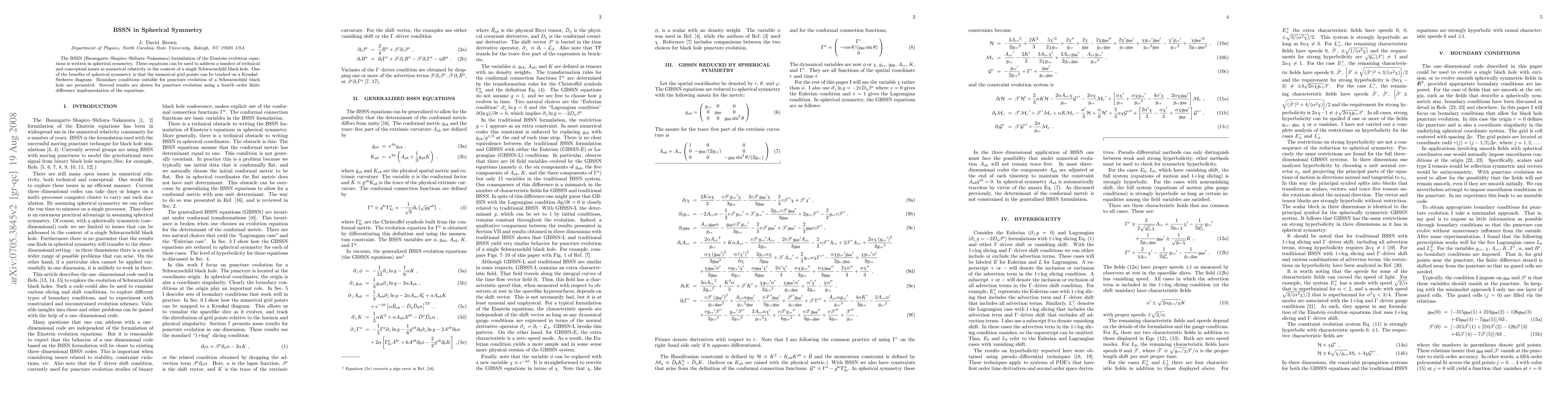 The BSSN (Baumgarte-Shapiro-Shibata-Nakamura) formulation of the Einstein evolution equations is written in spherical symmetry. These equations can be used to address a number of technical and conceptual issues in numerical relativity in the context of a single Schwarzschild black hole. One of the benefits of spherical symmetry is that the numerical grid points can be tracked on a Kruskal--Szekeres diagram. Boundary conditions suitable for puncture evolution of a Schwarzschild black hole are presented. Several results are shown for puncture evolution using a fourth--order finite difference implementation of the equations.
