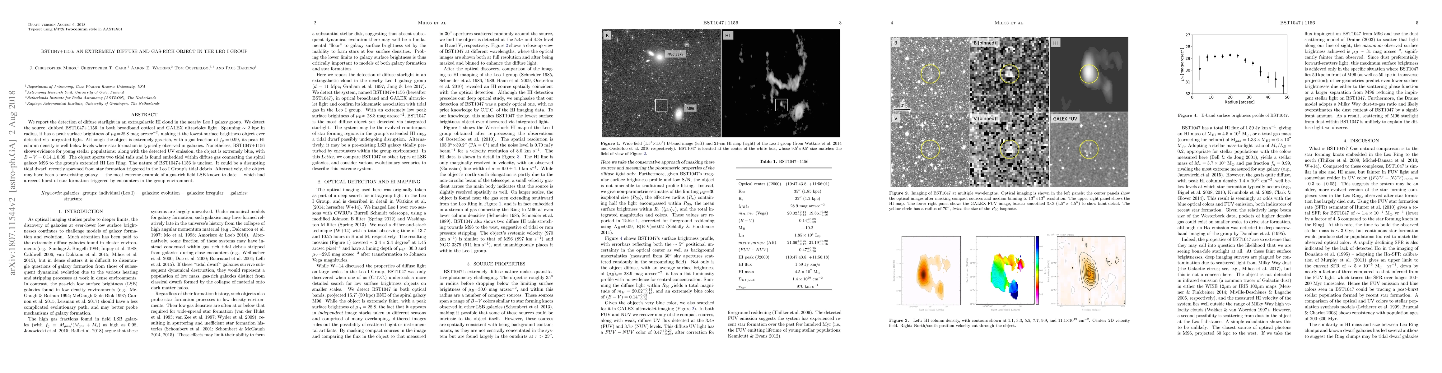 We report the detection of diffuse starlight in an extragalactic HI cloud in the nearby Leo~I galaxy group. We detect the source, dubbed BST1047+1156, in both broadband optical and GALEX ultraviolet light. Spanning ~ 2 kpc in radius, it has a peak surface brightness of $\mu_B$=28.8 mag/arcsec$^2$, making it the lowest surface brightness object ever detected via integrated light. Although the object is extremely gas-rich, with a gas fraction of $f_g$=0.99, its peak HI column density is well below levels where star formation is typically observed in galaxies. Nonetheless, BST1047+1156 shows evidence for young stellar populations: along with the detected UV emission, the object is extremely blue, with B-V=0.14$\pm$0.09. The object sports two tidal tails and is found embedded within diffuse gas connecting the spiral galaxy M96 to the group's extended HI Leo Ring. The nature of BST1047+1156 is unclear. It could be a disrupting tidal dwarf, recently spawned from star formation triggered in the Leo I Group's tidal debris. Alternatively, the object may have been a pre-existing galaxy --- the most extreme example of a gas-rich field LSB known to date --- which had a recent burst of star formation triggered by encounters in the group environment.