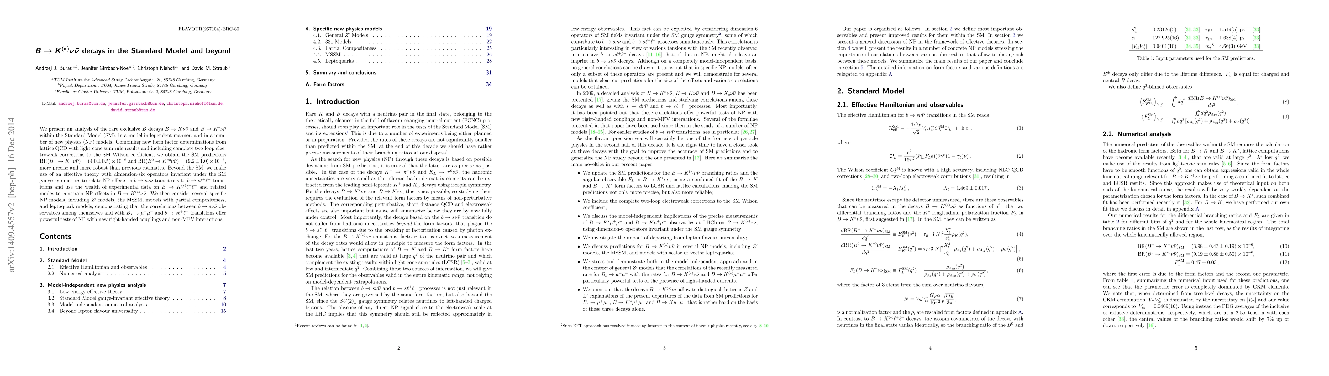 This paper analyzes rare $B\to K^{(*)}\nu\bar\nu$ decays within the Standard Model and various new physics models, providing precise SM predictions and using experimental data to constrain new physics effects. It highlights the potential of these decays to test new physics scenarios.