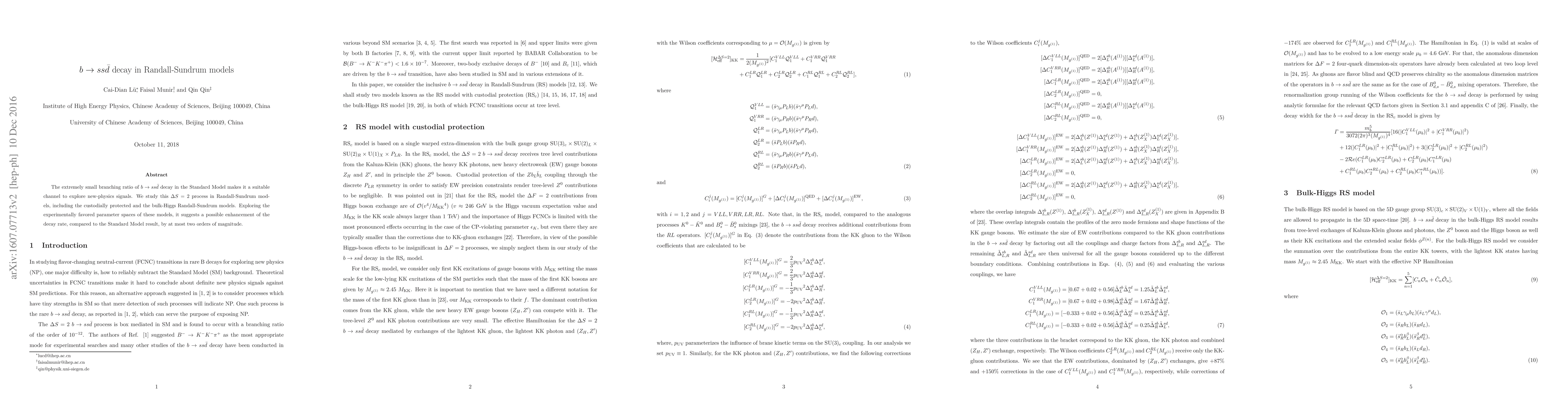 This paper investigates the $b\to ss{\bar d}$ decay in Randall-Sundrum models, finding potential new-physics signals that could enhance the decay rate by up to two orders of magnitude compared to Standard Model predictions. The study considers both custodially protected and bulk-Higgs Randall-Sundrum models.