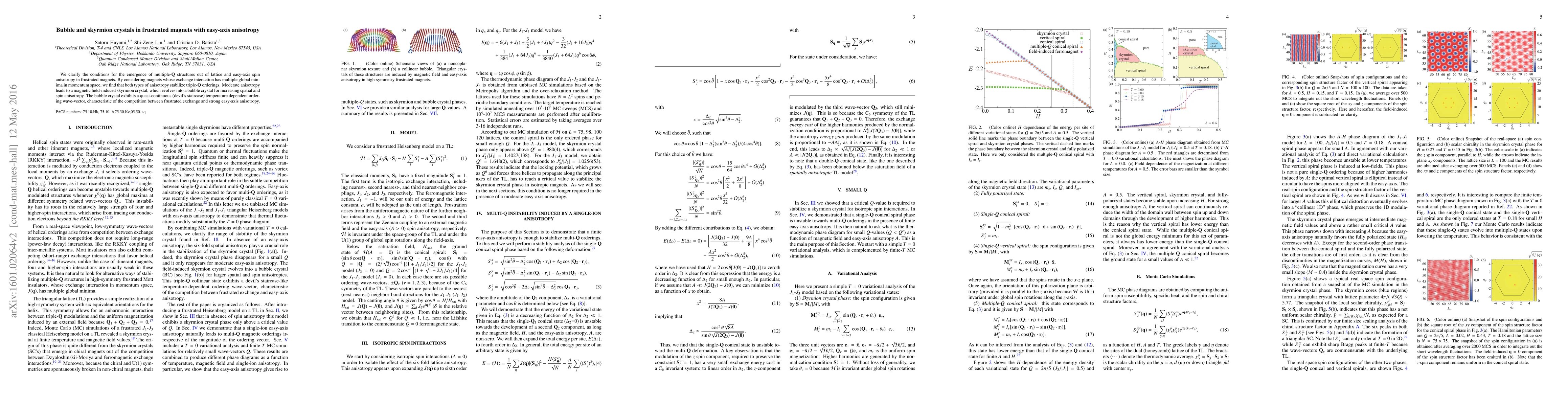 We clarify the conditions for the emergence of multiple-${\bf Q}$ structures out of lattice and easy-axis spin anisotropy in frustrated magnets. By considering magnets whose exchange interaction has multiple global minima in momentum space, we find that both types of anisotropy stabilize triple-${\bf Q}$ orderings. Moderate anisotropy leads to a magnetic field-induced skyrmion crystal, which evolves into a bubble crystal for increasing spatial or spin anisotropy. The bubble crystal exhibits a quasi-continuous (devil's staircase) temperature dependent ordering wave-vector, characteristic of the competition between frustrated exchange and strong easy-axis anisotropy.
