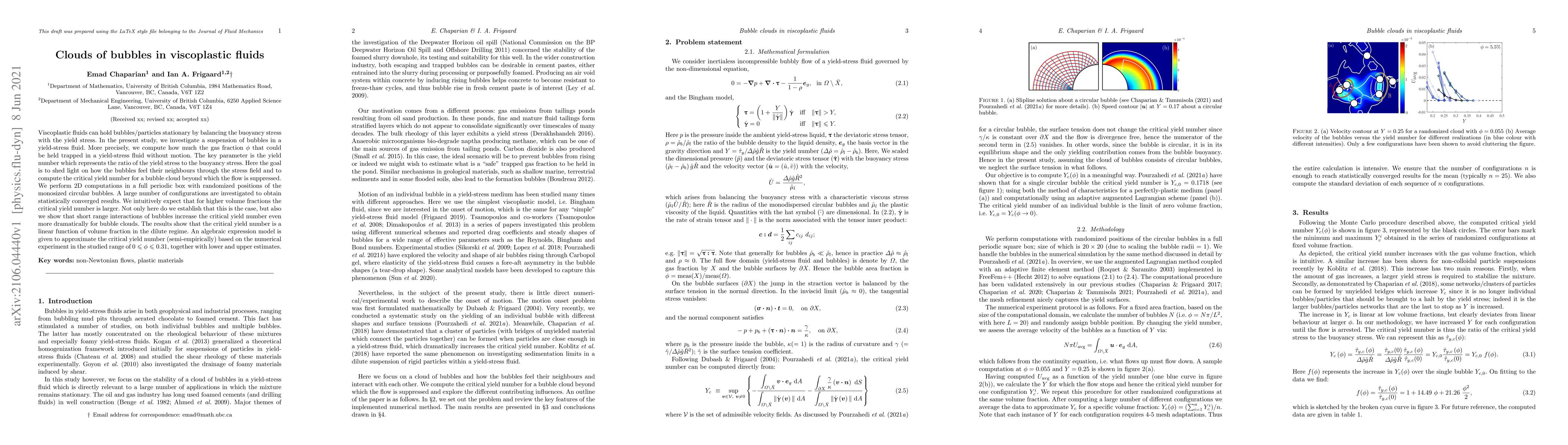 Research investigates how bubbles in viscoplastic fluids can be trapped without moving, finding that the critical yield number for bubble clouds increases with volume fraction and is strongly affected by short-range interactions between bubbles.
