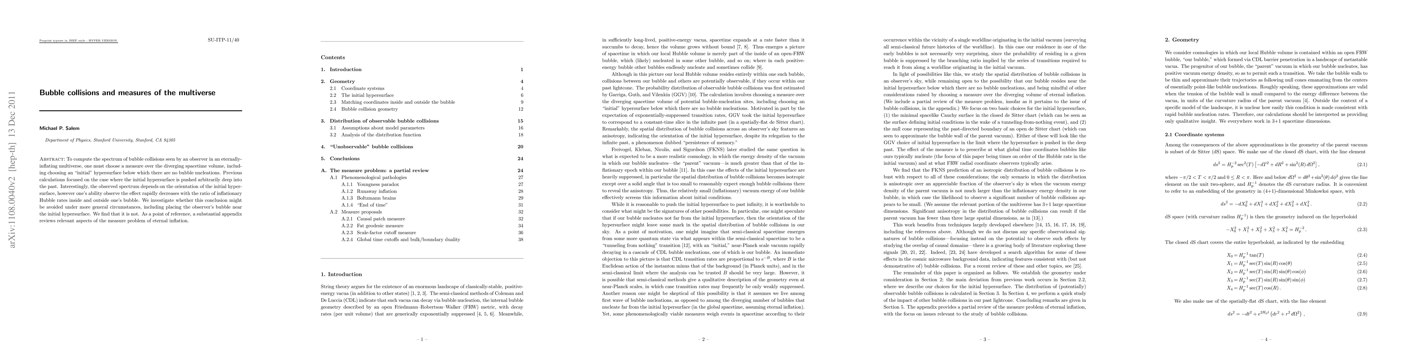 To compute the spectrum of bubble collisions seen by an observer in an eternally-inflating multiverse, one must choose a measure over the diverging spacetime volume, including choosing an "initial" hypersurface below which there are no bubble nucleations. Previous calculations focused on the case where the initial hypersurface is pushed arbitrarily deep into the past. Interestingly, the observed spectrum depends on the orientation of the initial hypersurface, however one's ability observe the effect rapidly decreases with the ratio of inflationary Hubble rates inside and outside one's bubble. We investigate whether this conclusion might be avoided under more general circumstances, in particular placing the observer's bubble near the initial hypersurface. We find that it is not. As a point of reference, a substantial appendix reviews relevant aspects of the measure problem of eternal inflation.