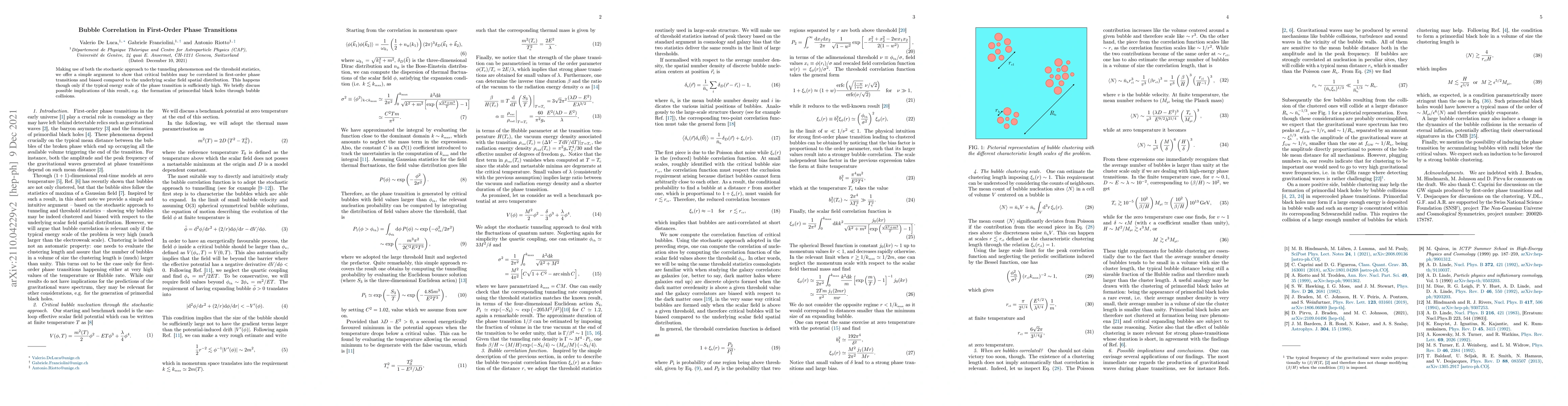 This paper demonstrates that critical bubbles in first-order phase transitions can be correlated and biased from the underlying scalar field distribution, provided the energy scale is high enough. It also explores potential implications, such as the formation of primordial black holes via bubble collisions.