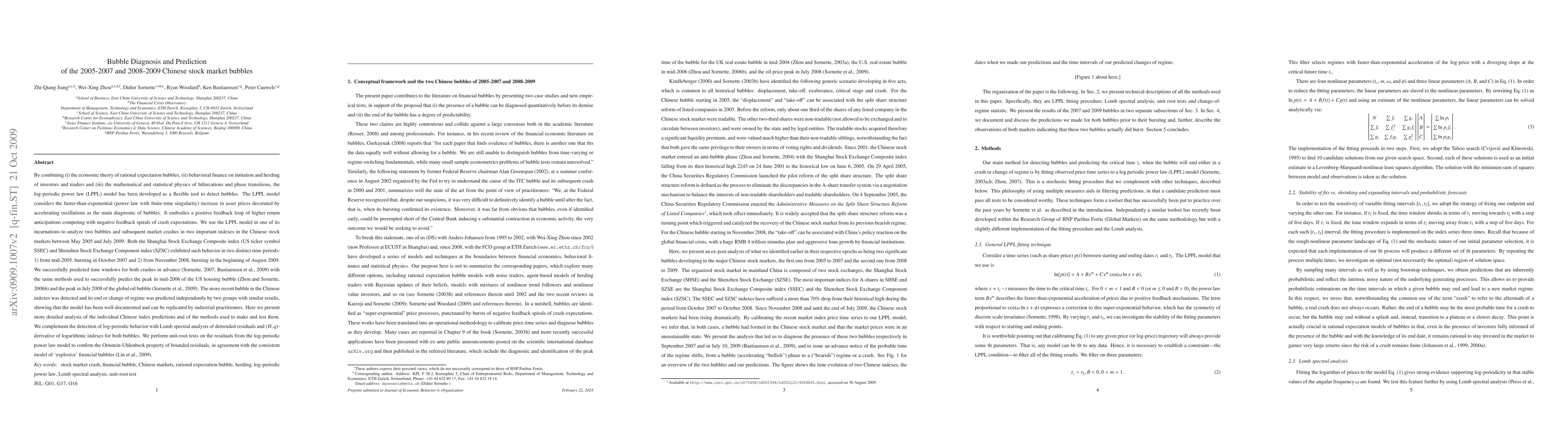 By combining (i) the economic theory of rational expectation bubbles, (ii) behavioral finance on imitation and herding of investors and traders and (iii) the mathematical and statistical physics of bifurcations and phase transitions, the log-periodic power law model has been developed as a flexible tool to detect bubbles. The LPPL model considers the faster-than-exponential (power law with finite-time singularity) increase in asset prices decorated by accelerating oscillations as the main diagnostic of bubbles. It embodies a positive feedback loop of higher return anticipations competing with negative feedback spirals of crash expectations. We use the LPPL model in one of its incarnations to analyze two bubbles and subsequent market crashes in two important indexes in the Chinese stock markets between May 2005 and July 2009. Both the Shanghai Stock Exchange Composite and Shenzhen Stock Exchange Component indexes exhibited such behavior in two distinct time periods: 1) from mid-2005, bursting in Oct. 2007 and 2) from Nov. 2008, bursting in the beginning of Aug. 2009. We successfully predicted time windows for both crashes in advance with the same methods used to successfully predict the peak in mid-2006 of the US housing bubble and the peak in July 2008 of the global oil bubble. The more recent bubble in the Chinese indexes was detected and its end or change of regime was predicted independently by two groups with similar results, showing that the model has been well-documented and can be replicated by industrial practitioners. Here we present more detailed analysis of the individual Chinese index predictions and of the methods used to make and test them.