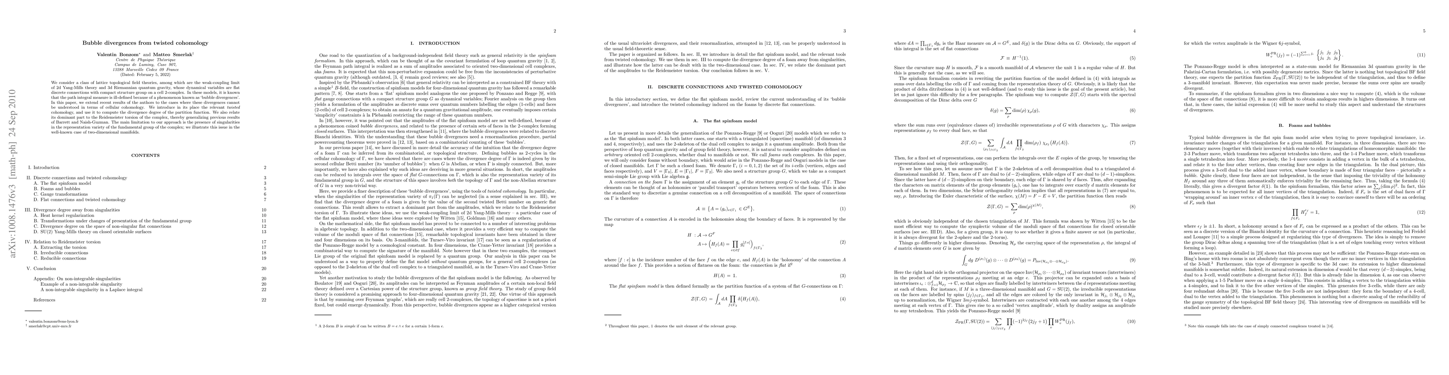 We consider a class of lattice topological field theories, among which are the weak-coupling limit of 2d Yang-Mills theory and 3d Riemannian quantum gravity, whose dynamical variables are flat discrete connections with compact structure group on a cell 2-complex. In these models, it is known that the path integral measure is ill-defined because of a phenomenon known as `bubble divergences'. In this paper, we extend recent results of the authors to the cases where these divergences cannot be understood in terms of cellular cohomology. We introduce in its place the relevant {\it twisted} cohomology, and use it to compute the divergence degree of the partition function. We also relate its dominant part to the Reidemeister torsion of the complex, thereby generalizing previous results of Barrett and Naish-Guzman. The main limitation to our approach is the presence of singularities in the representation variety of the fundamental group of the complex; we illustrate this issue in the well-known case of two-dimensional manifolds.