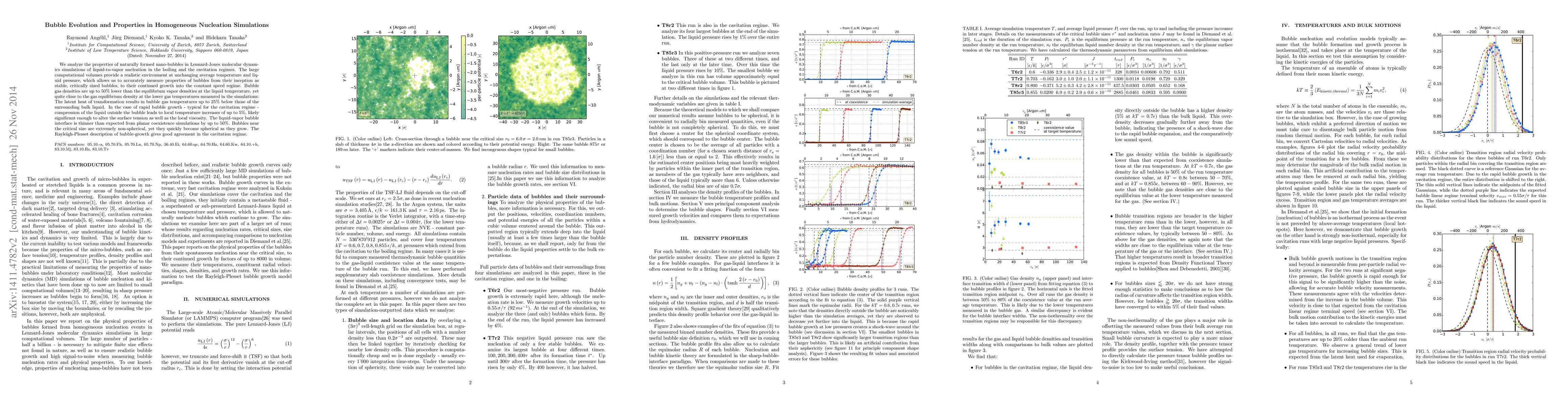 This paper investigates the formation and properties of nano-bubbles in molecular dynamics simulations of liquid-to-vapor nucleation, revealing that bubble gas densities are significantly lower than equilibrium vapor densities and that bubble temperatures can be up to 25% below the surrounding liquid due to latent heat effects. Rapid bubble growth in the cavitation regime leads to local temperature increases that may affect surface tension and viscosity, while the liquid-vapor interface is thinner than planar coexistence simulations predict.