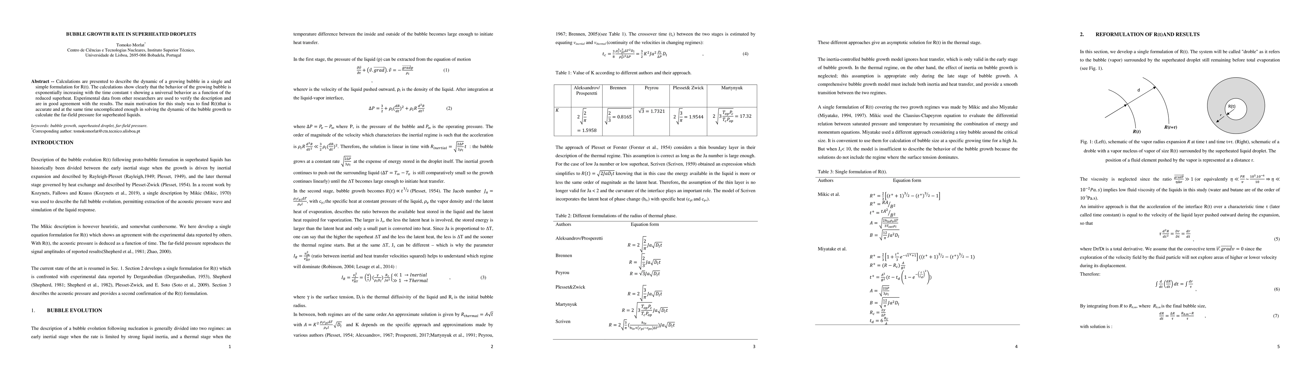 This study presents a simple formulation for the growth rate of bubbles in superheated droplets, demonstrating that the growth is exponentially increasing with a time constant τ. Experimental data corroborate the model, aiming to provide an accurate yet uncomplicated method for calculating far-field pressure in superheated liquids.