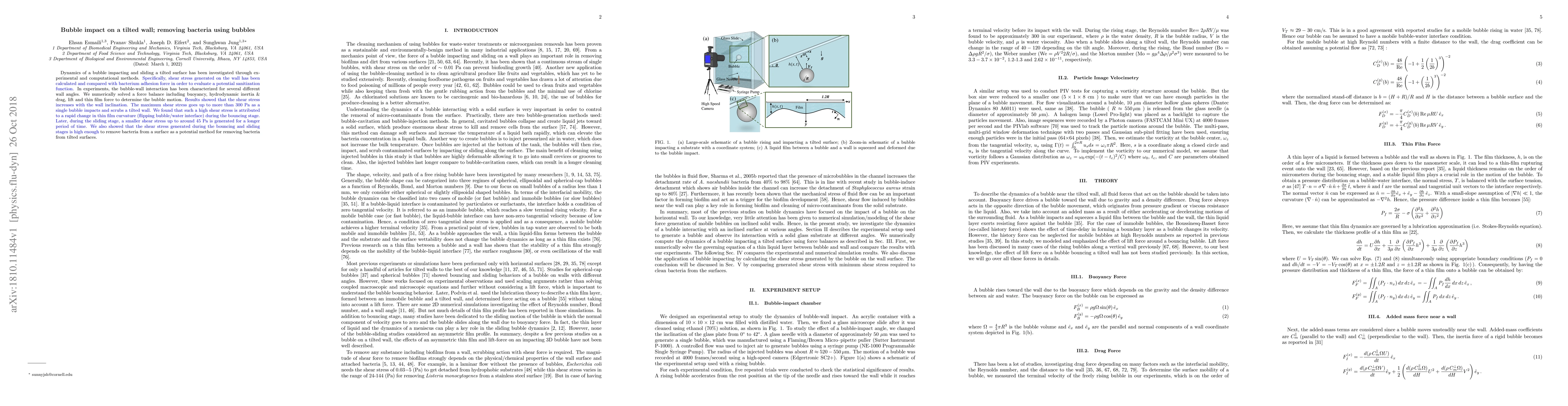 Researchers found that a bubble can generate enough shear stress to remove bacteria from tilted surfaces, with maximum stress reaching over 300 Pa and lasting up to 45 Pa during the sliding stage.