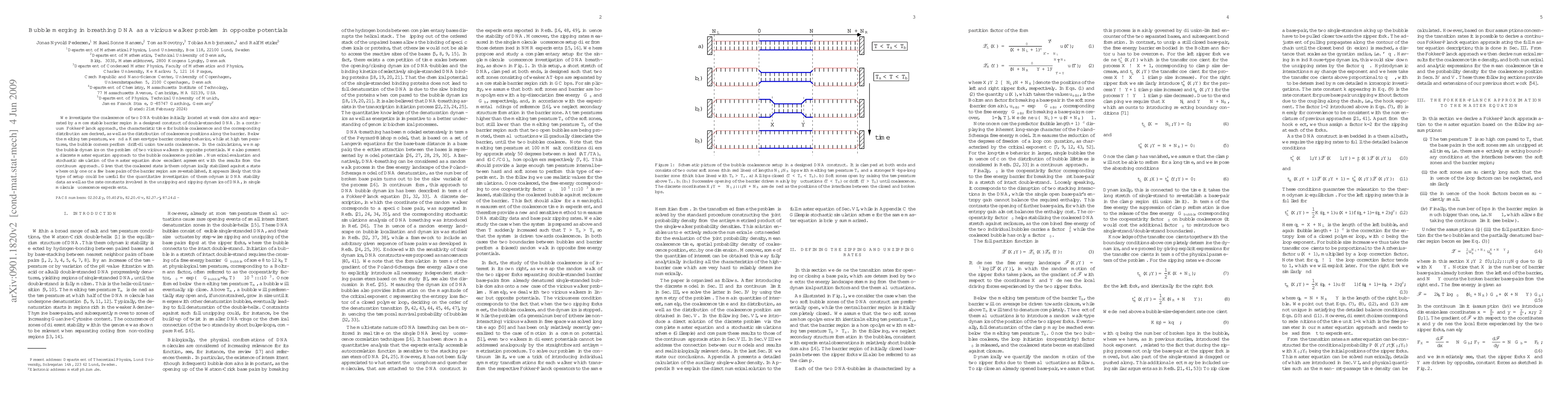 This paper investigates the merging of two DNA bubbles in a double-stranded DNA construct, modeling the process using a Fokker-Planck approach and finding a Kramers-type barrier crossing behavior at low temperatures. The dynamics are mapped to a problem of two vicious walkers in opposite potentials, with numerical simulations validating the continuum model.