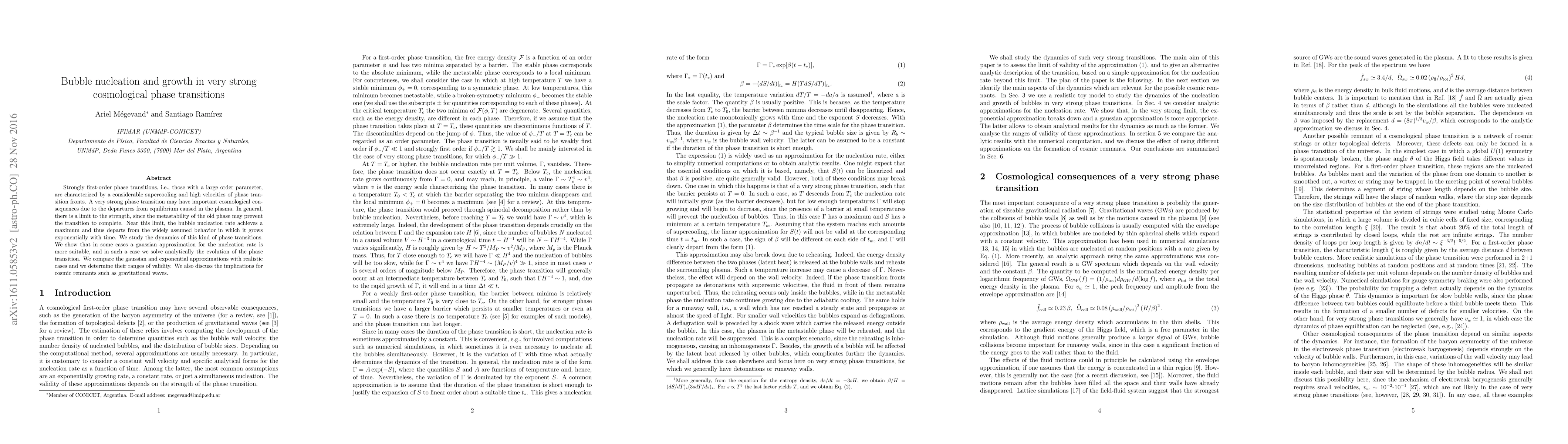 The paper presents detailed analytical solutions and comparisons for bubble nucleation and growth during very strong cosmological phase transitions, extending existing theories.